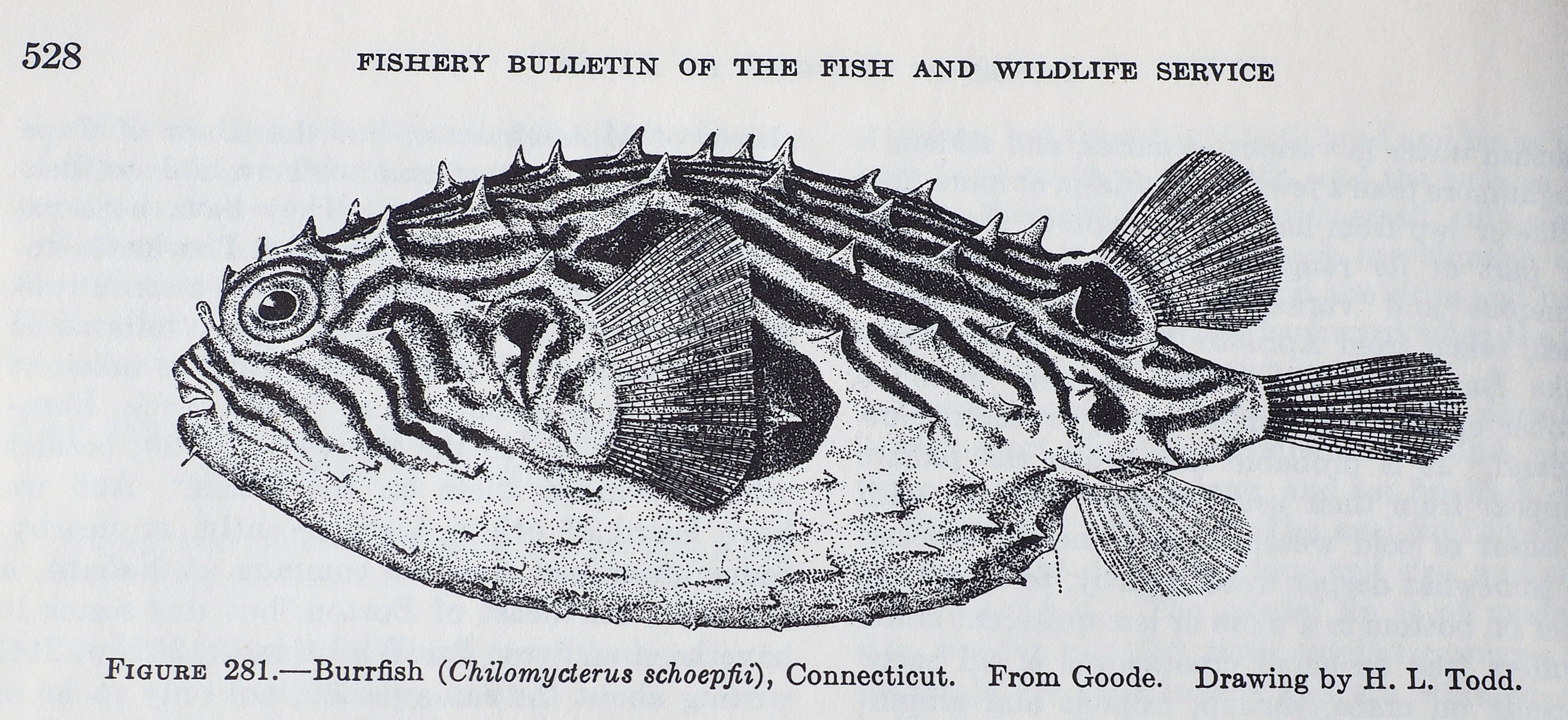 From Fishes of the Gulf of Maine by Bigelow and Schroeder (1953) online courtesy of MBL/WHOI http://www.gma.org/fogm/Histrio_pictus.htm
