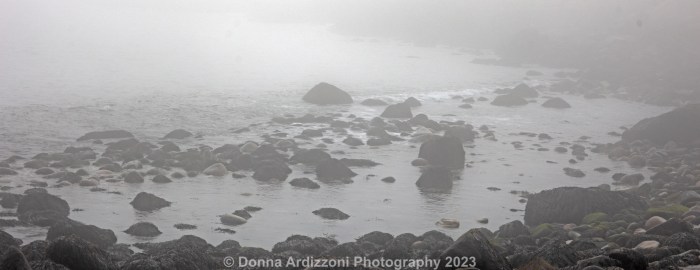 When walking on Monday around 4:30 the sun came out, by the time I got to Ocean Lawn on Coolidge Point the fog was surrounding Ocean Lawn and the ocean.
