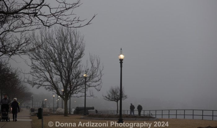 The fog was very thick on Sunday. Rick and I walked the Stacy Boulevard and Magnolia Beach.