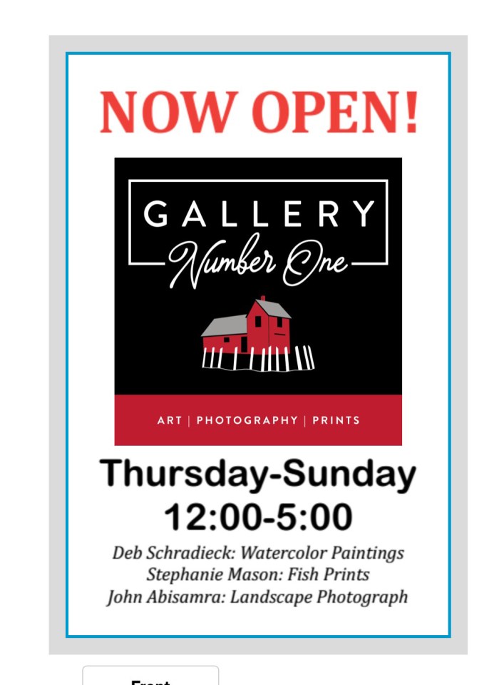 Yes, that’s an OPEN sign just installed in front of Gallery Number One!! Officially open this weekend: Friday, Saturday& Sunday from 12:00-5:00. This is our photographer John Abisamra. You can see his beautiful work along with Stephanie Mason’s fish prints, and my watercolors. I’ll be working Saturday. Stop by! This is a soft opening…grand opening to be announced. 1 Main Street, Rockport.