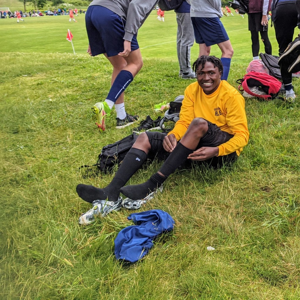 Cape Ann United beat North Andover 2:0, Max Sperry in goal. Cape Ann United scores by Gino Tripoli, the first a tap in and the second a PK, after which he turned to the stands asking, “Dad, like that? Happy Father’s Day!” Sun broke after the game.