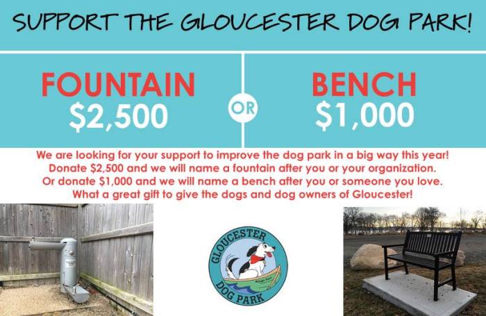 Mary Lou Marganis, founder of the Gloucester Dog Park shares the Tino’s Corner plaque with us. The plaque illuminates one of the founding principles of the dog park. Tino’s Corner is a special area of the dog park for dogs not ready for the park, dogs that need special training, or dogs that need time to adjust.