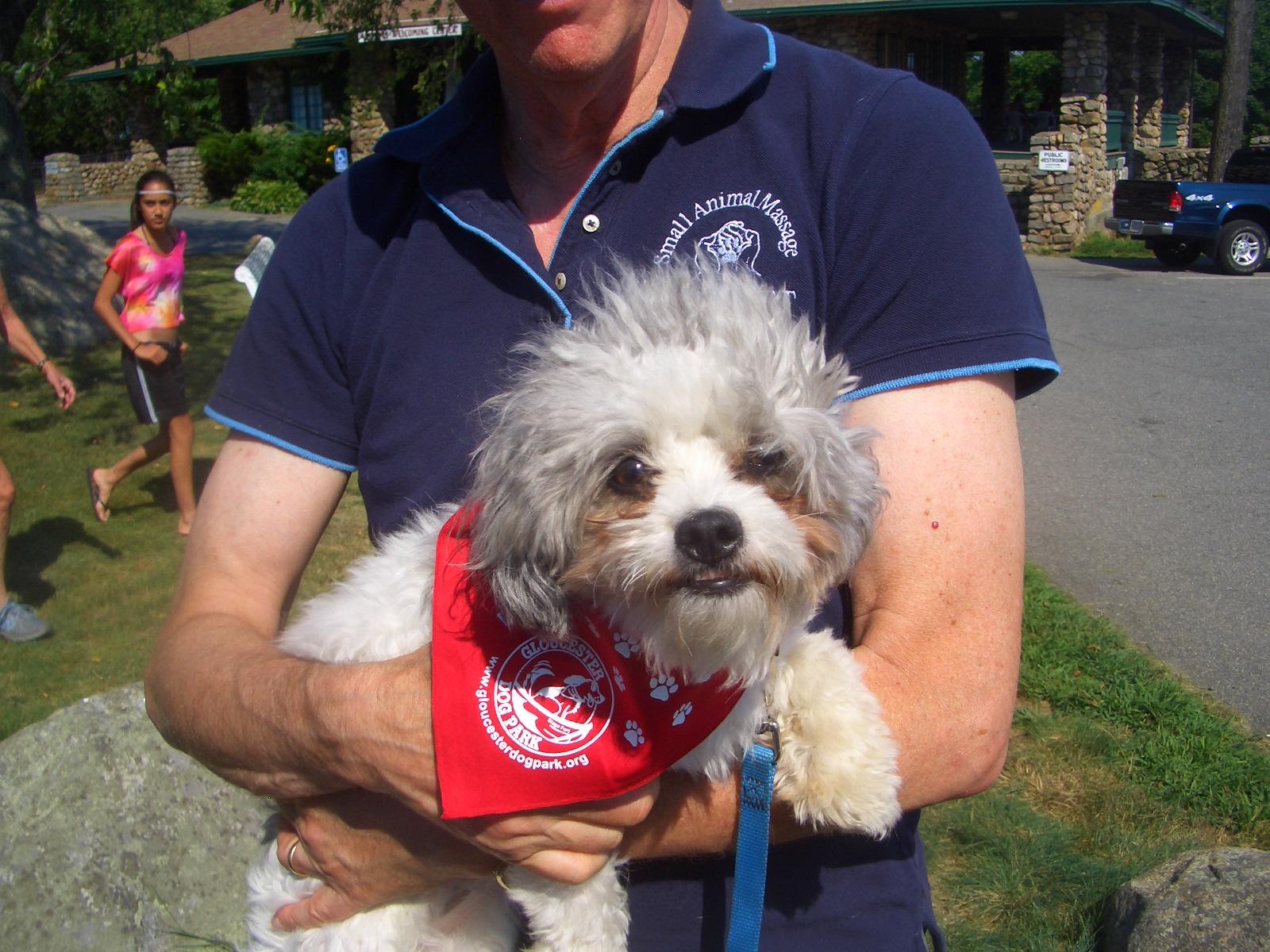 Mary Lou Marganis, founder of the Gloucester Dog Park shares the Tino’s Corner plaque with us. The plaque illuminates one of the founding principles of the dog park. Tino’s Corner is a special area of the dog park for dogs not ready for the park, dogs that need special training, or dogs that need time to adjust.