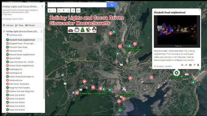 6th annual Holiday Lights and Cocoa Drives Gloucester, Massachusetts – the web-based digital map on Google is now LIVE!