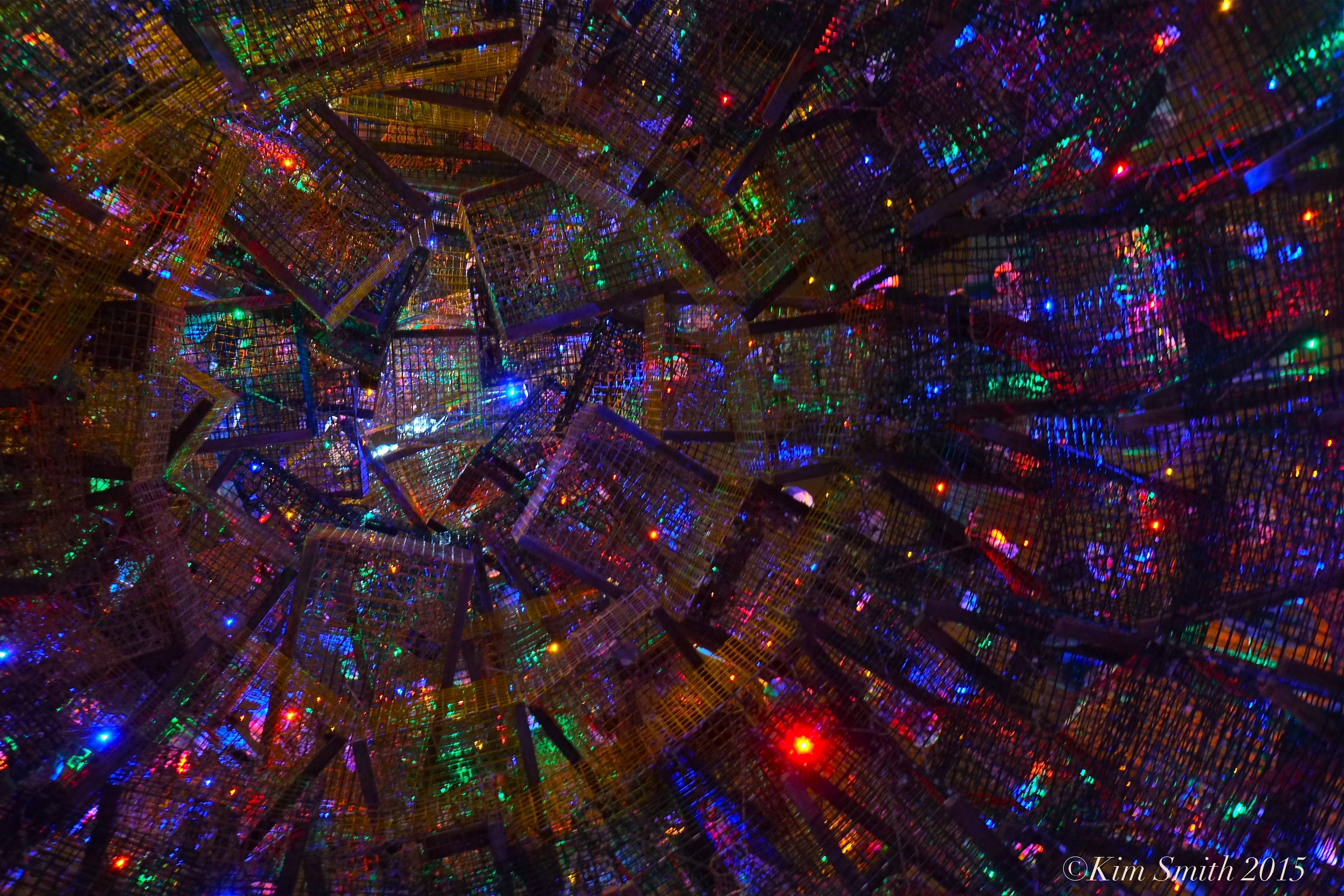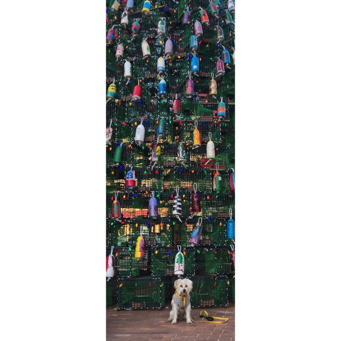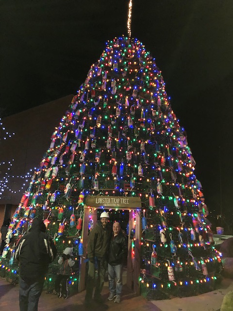 The first one I saw in 2012 was amazing and it gets better every year! From the days of stacked traps and colored lights we now have a wider base with doorways opening the inside with cantilevered traps opening up the center of the tree for a great view from inside, a look at the dome and viewing a light show of Christmas Colors on the floor. (The lightshow with its colored moving dots of light brought back memories of college…but that’s another story!) The stack is tighter and now the traps are color coordinated Yellow and Green by level and the colored lights have given way to energy efficient white LEDs. The yearly engineering advances allow for more and more hand painted buoys from the kids at Art Haven. Hard to imagine anything more spirit lifting than just walking past the tree, not to mention spending some time in it and around! I met two photographers who were waiting for the light to go down and then were going from Gloucester to Rockport, ME and Portland to capture some other trap trees. Their take? Others might be a little taller but none are better than Gloucester’s tree!