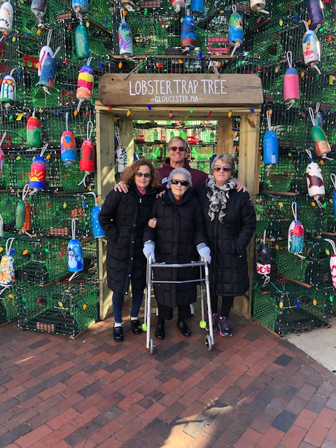 Mayor Sefatia and granddaughters, Cape Ann Chamber of Commerce CEO Ken Riehl, and Gloucester’s Economic Development Director Sal Di Stefano and his wife Maria (and kids), all stopped by to check on the tree’s progress while they were out shopping local for Small Business Saturday.