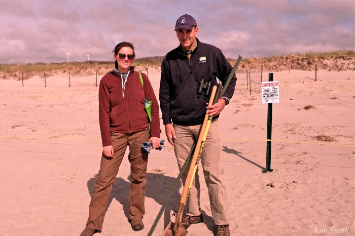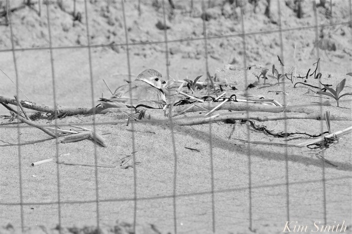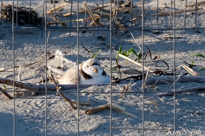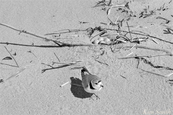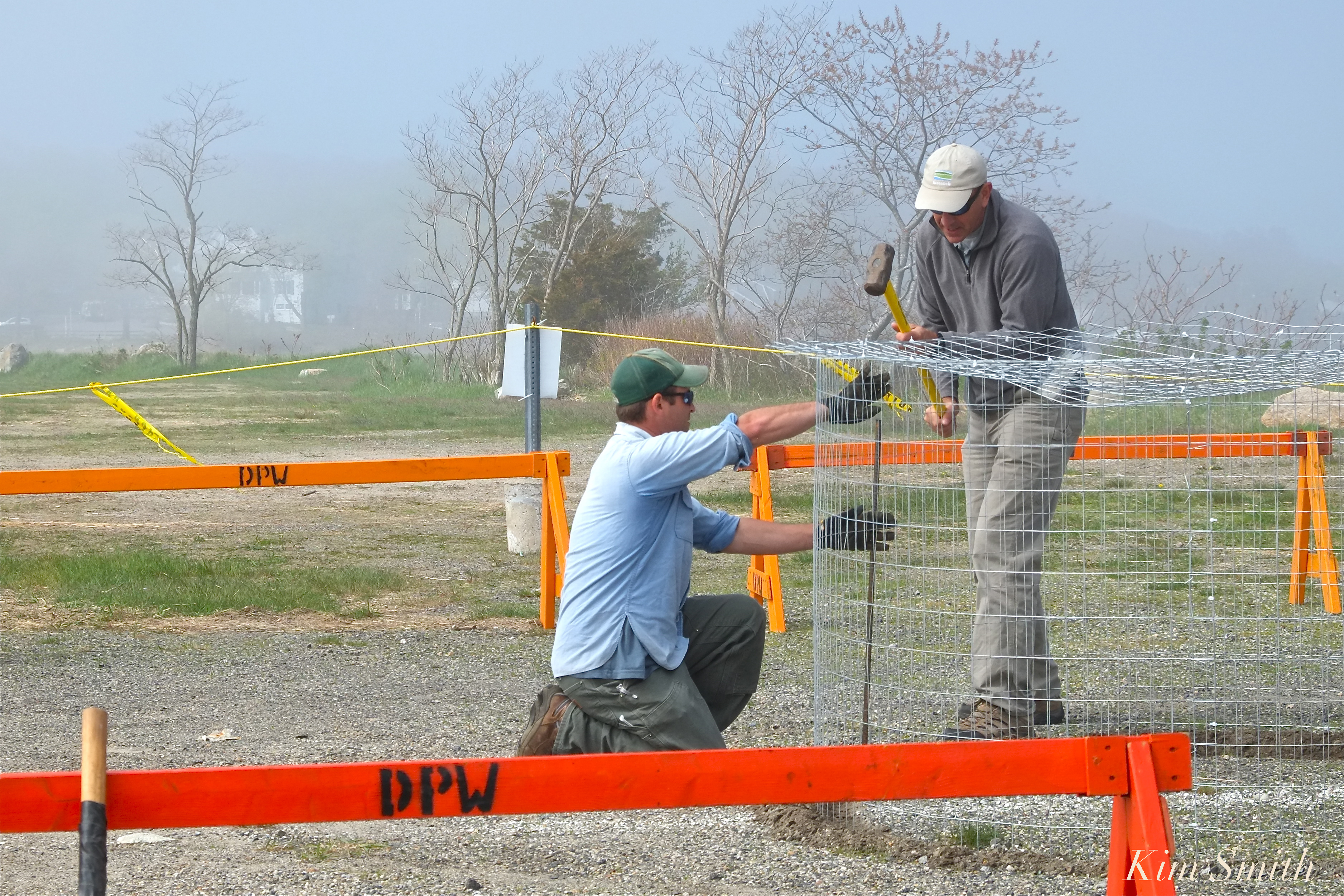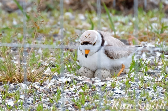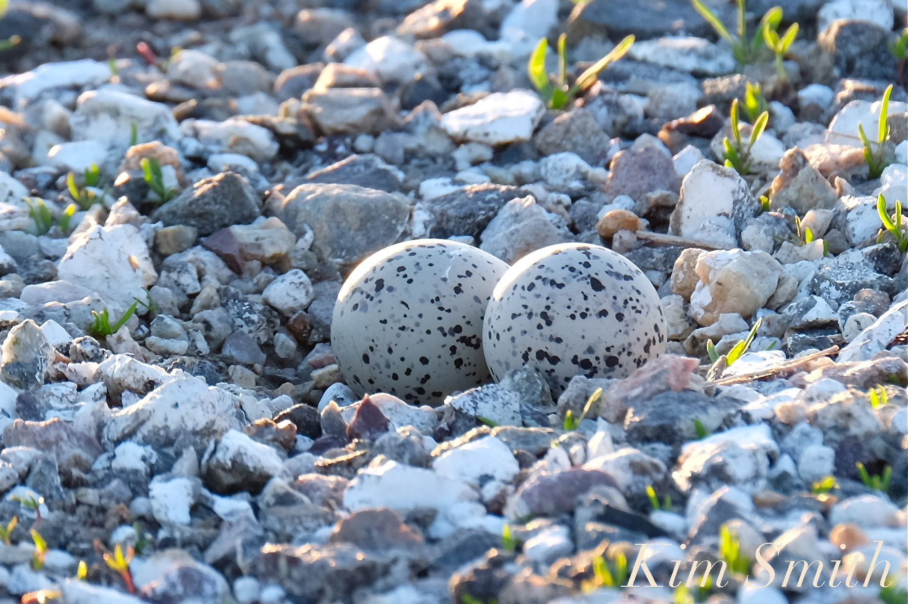 Within hours after the egg was discovered, Gloucester’s DPW crew, under the direction of Mike Hale and Joe Lucido, erected a barricade around the nest so that the egg would not be run over by a vehicle. Many in the community rallied around the displaced plover family. After the second egg was laid, Dave Rimmer, director of land stewardship at Essex County Greenbelt Association, along with his assistant Mike Carbone, placed around the nest a wire exclosure.