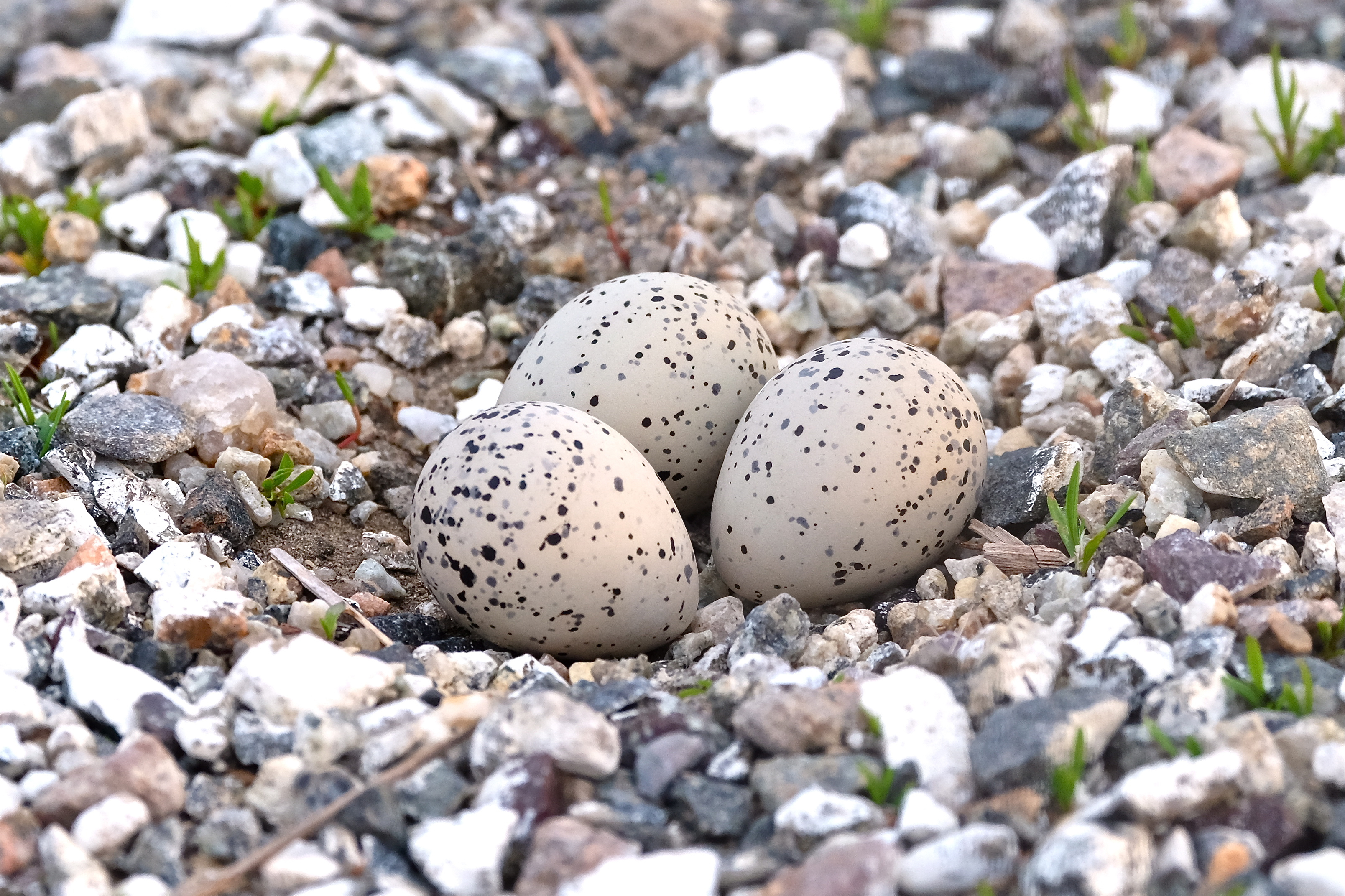 Not until three eggs have been laid do the plovers begin continuously sitting on the nest. During daylight hours, both the male and female take equal turns brooding the eggs. The “changing of the guard” takes place in half hour intervals and the nest is never left unprotected, unless a predator is being chased off the scene.