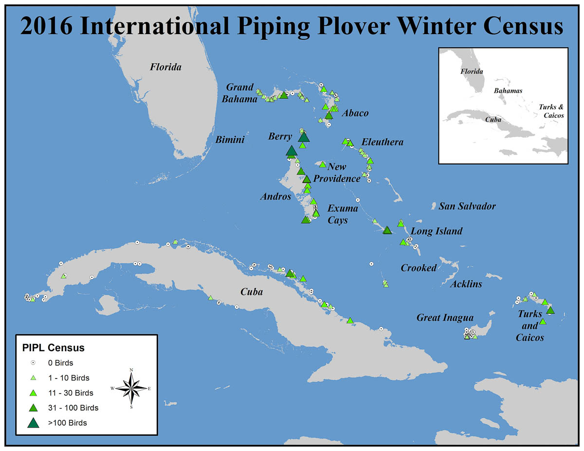 Piping Plovers winter primarily along Gulf Coast beaches from Florida to northern Mexico, along the Atlantic Coast from North Carolina to Florida, and at Caribbean Islands.