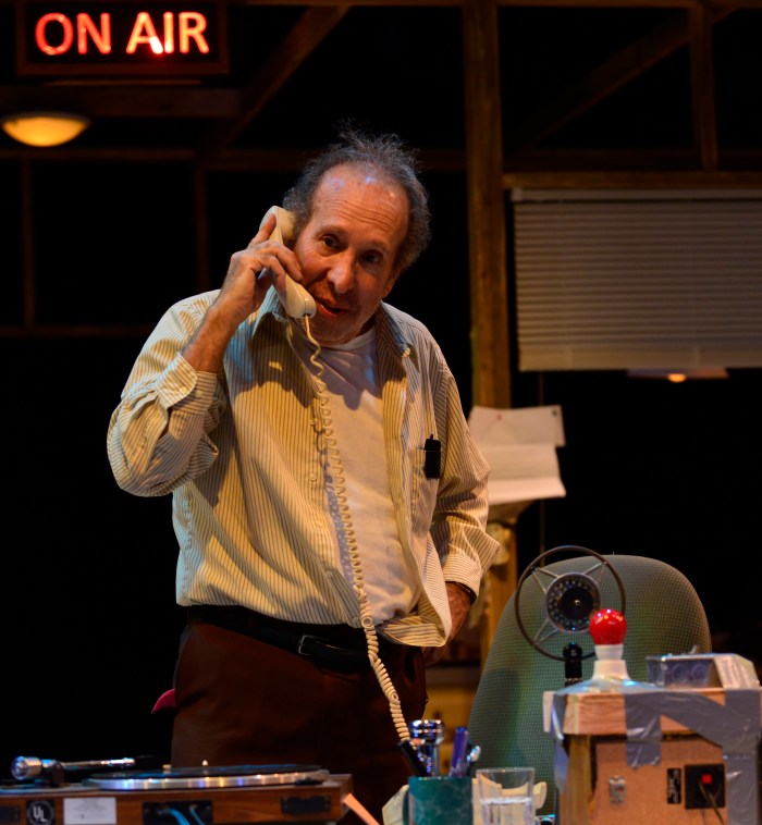 Integral to the production is the sound design by David Reiffel. Indeed, aside from the occasional visitor to Geller’s pack-rat hovel, his connection with the outside world is through sound: the ring of the phone, the knock on the door, the melodies of the records he plays. Yet aside from one brief sequence in which Geller vigorously “conducts” one of the pieces he’s playing, we don’t know the root of his dedication to the music he champions; he exhibits very little knowledge about the records he slaps onto the turntable, and demands that his listeners—there were 90,000 in real life—not call him to get more information. In his mind, the commercial-free music he broadcasts is a precious gift to his audience, and we should be grateful for it and not complain.