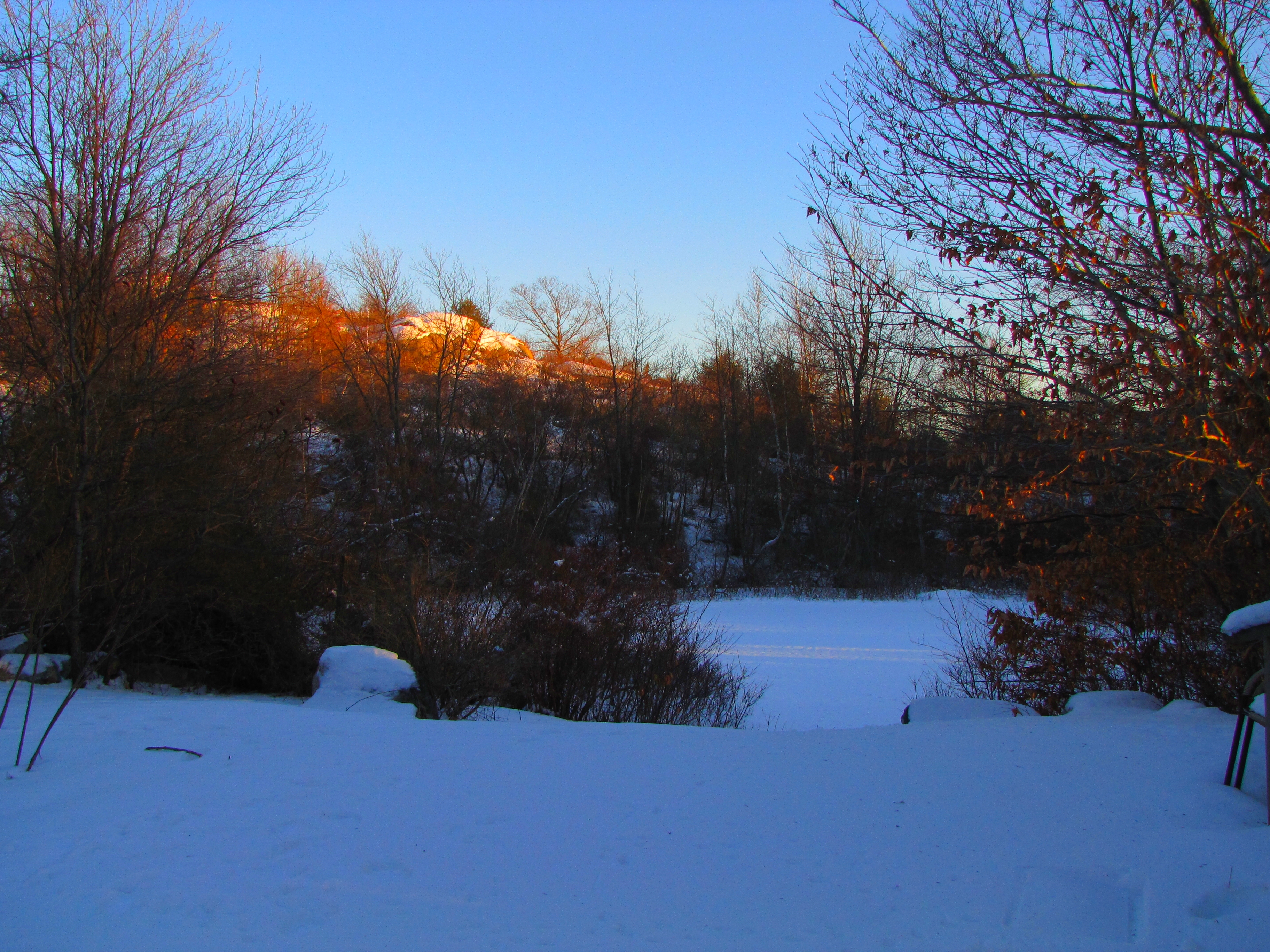 This is our Backyard In The Snow. Great view of Sunset Rock with our Vernal Pond in the Foreground.