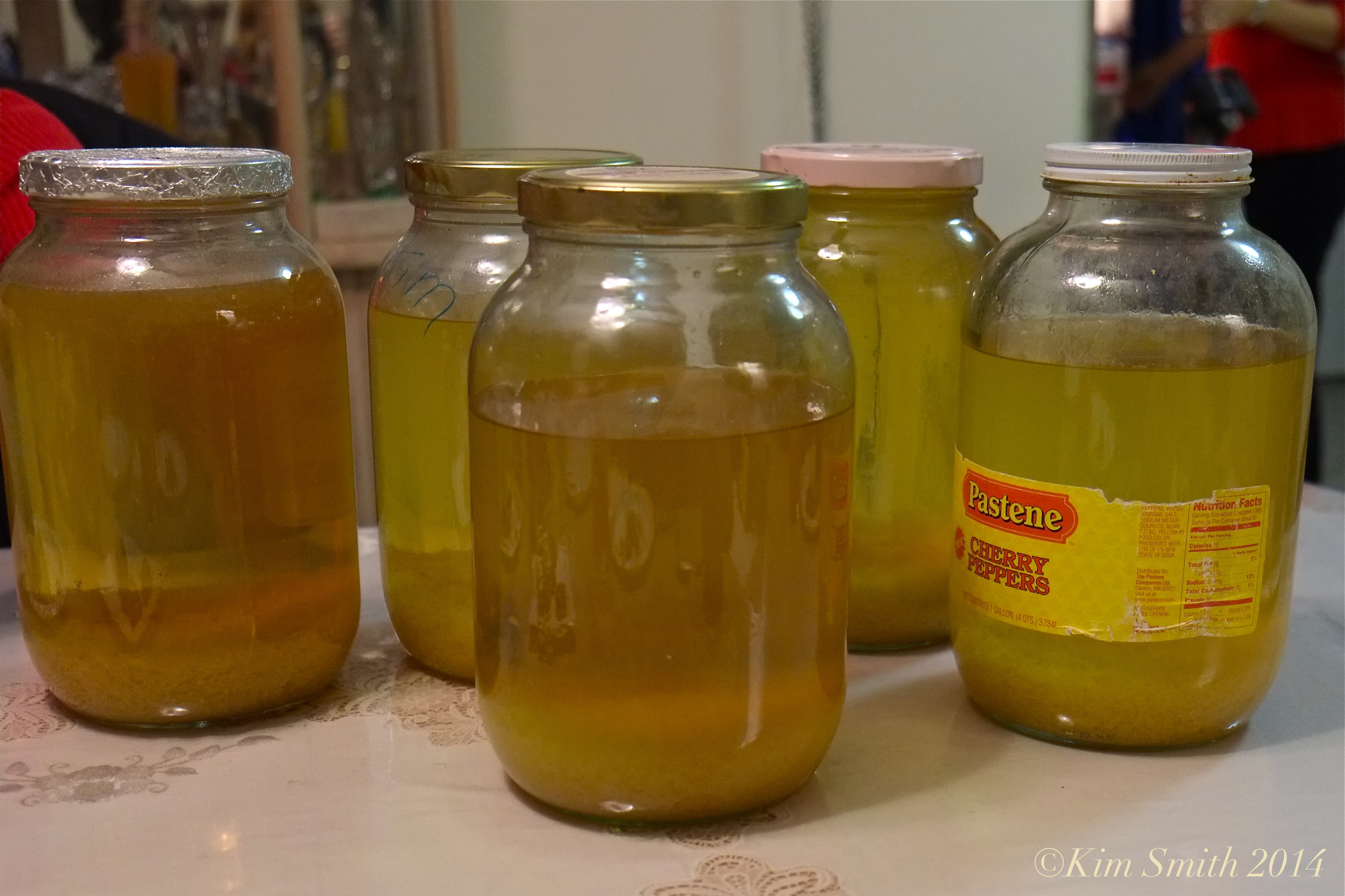 After bottling, we sampled each other’s batches, the reason being that they were all made in slightly different ways; several types of lemons were used, some had more vodka, and some had more simple syrup. Kathy pointed out that the because the recipe is so super simple, the only real error in making would be if you were to grate the lemons to close to the pith, which would make the beverage bitter.