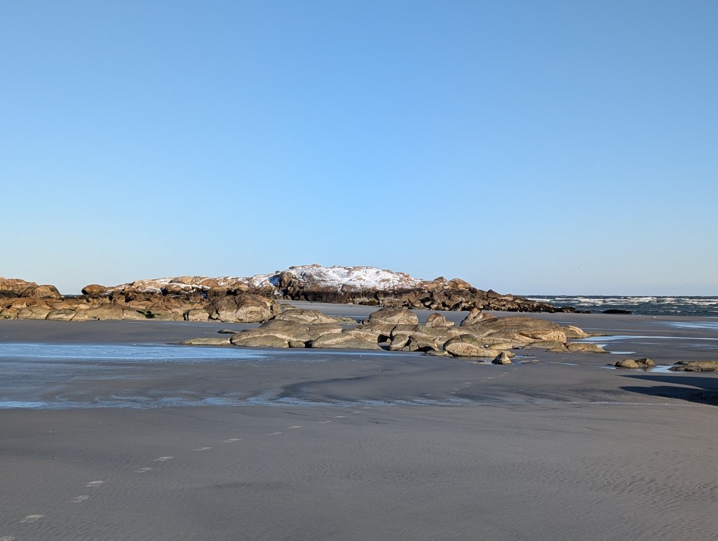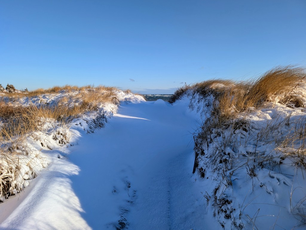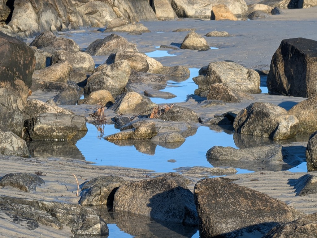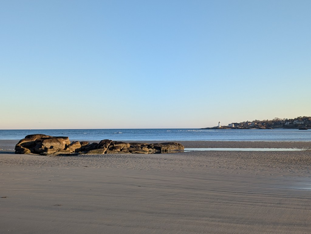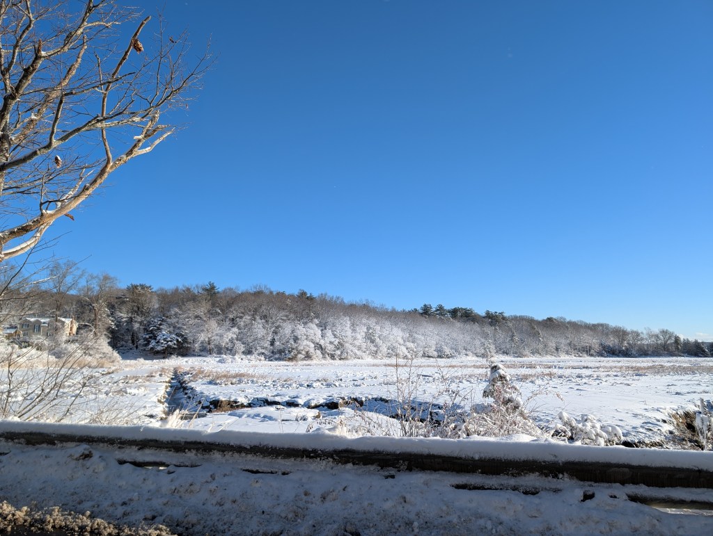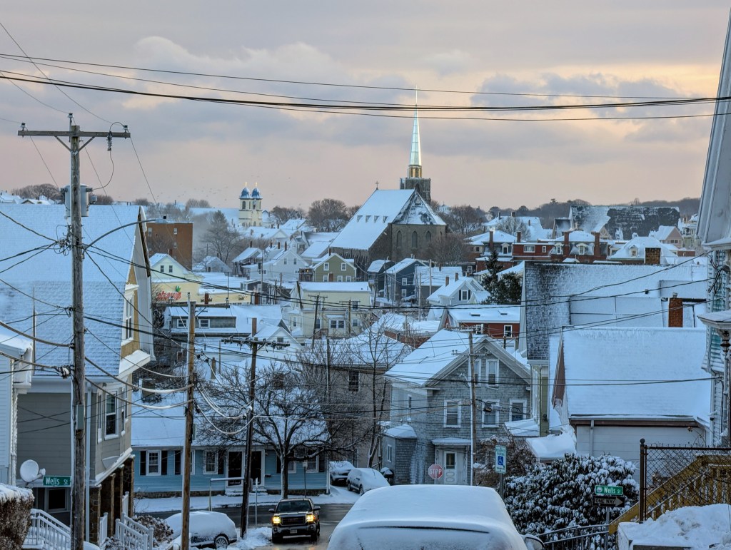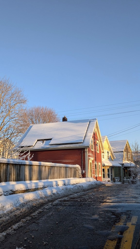 photos and video: Rooftops, beaches, and robins. Views from the road plus two winter walks on Wingaersheek Beach–yesterday vs. snowfall today. Jan. 19 (icy blue puddles and sheen) vs. Jan. 20 (yellow light, soft and silent).