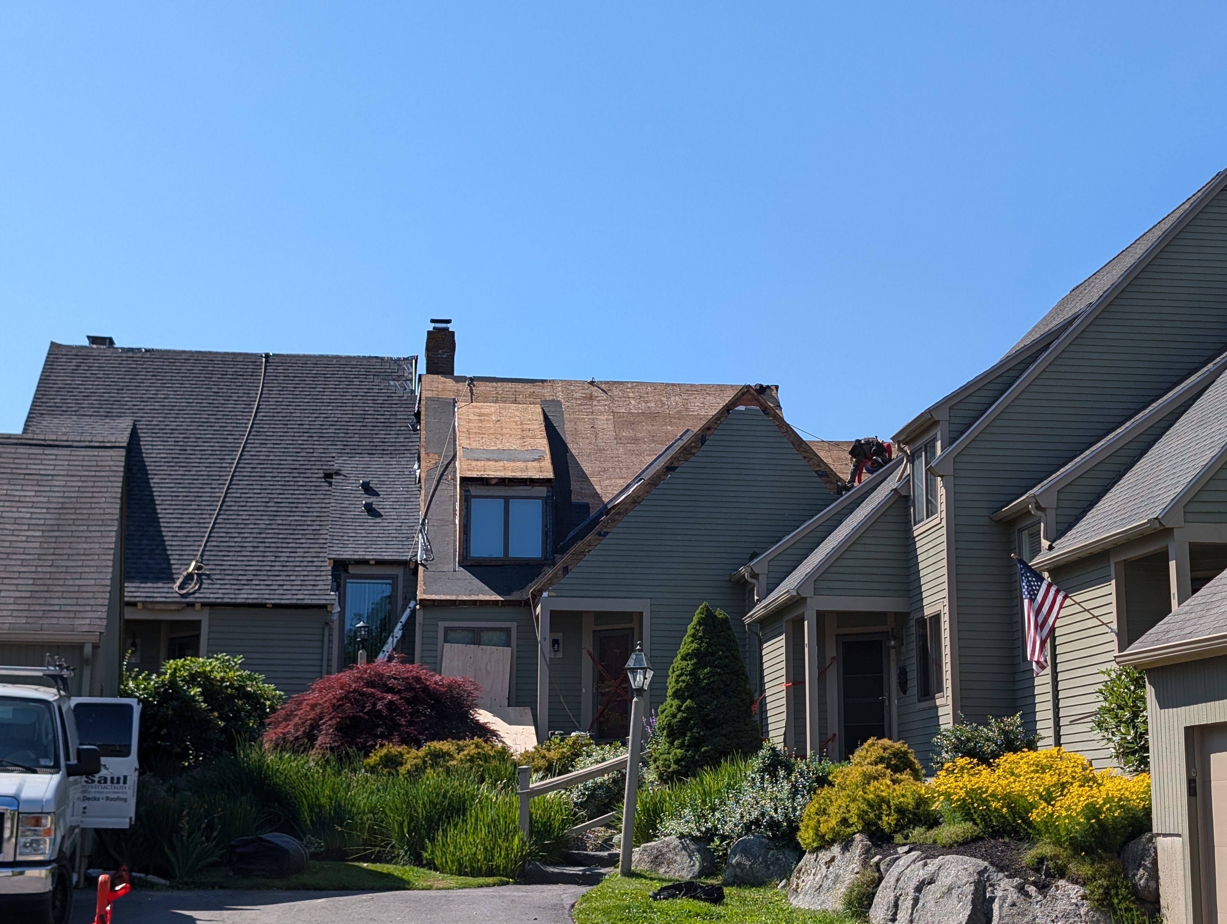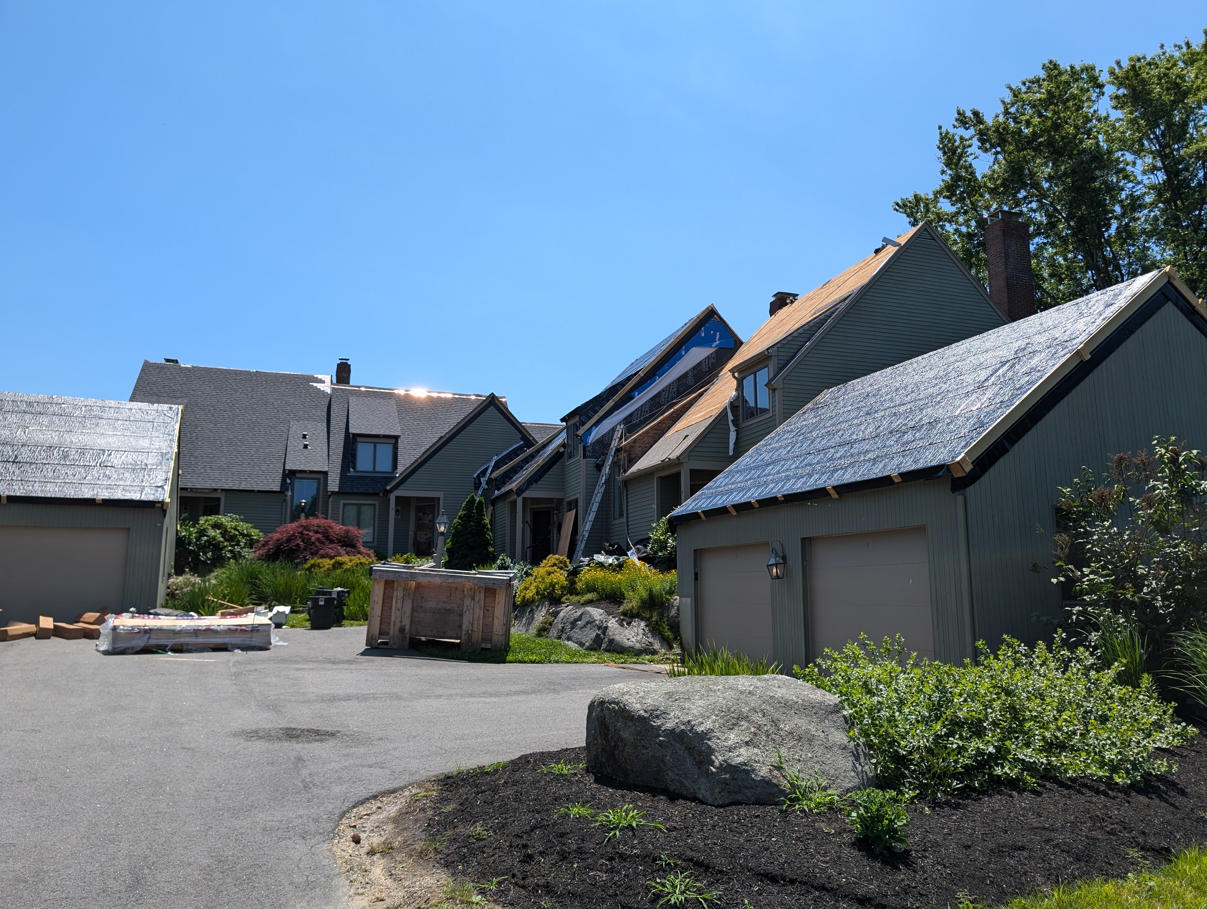 Out with the old exterior and in with the new! The Old Nugent Farm condominiums are getting some love in the summer of 2024. There are 70+ (72?) condos and SPS was contracted to take care of each one. The exterior components to be demoed and replaced are all the biggies: Roofs (some with skylights). Siding. Windows. Deck. Chimney repointing. The completion date is expected before the summer of 2025.