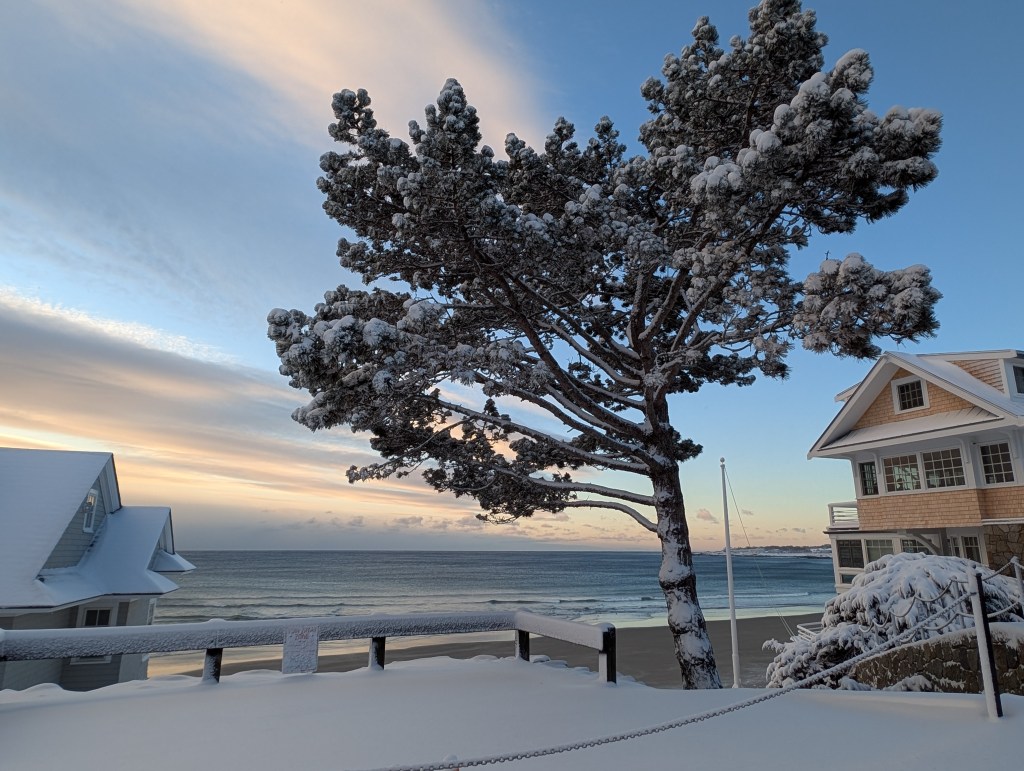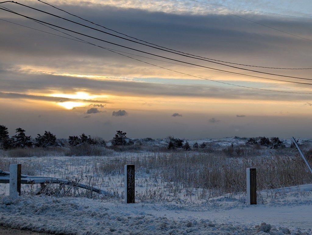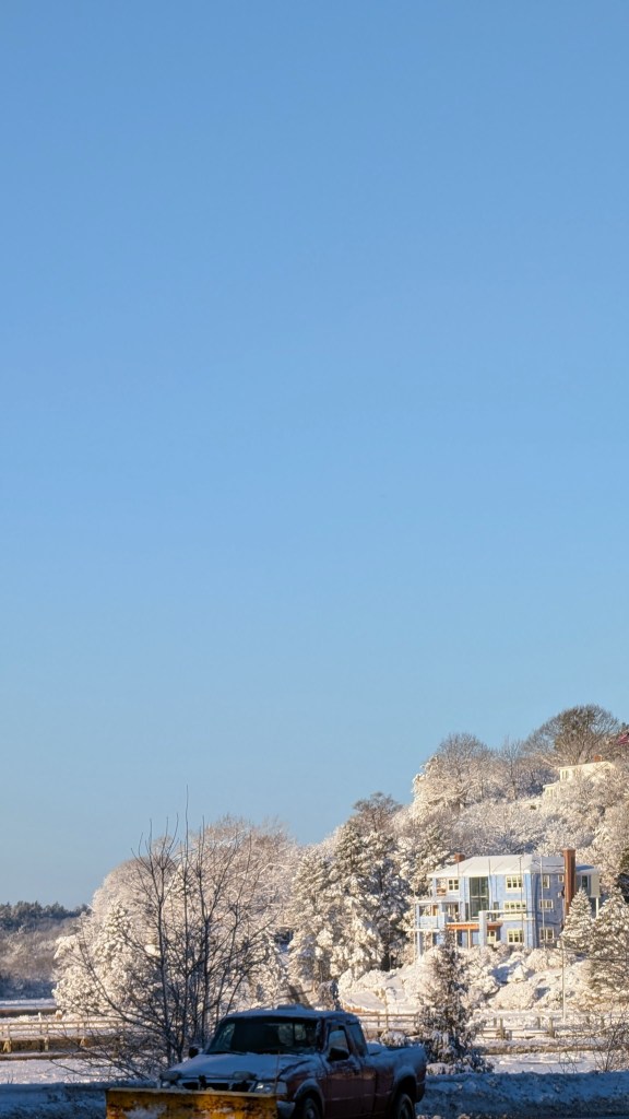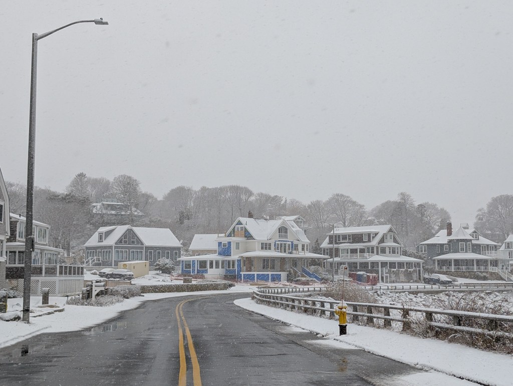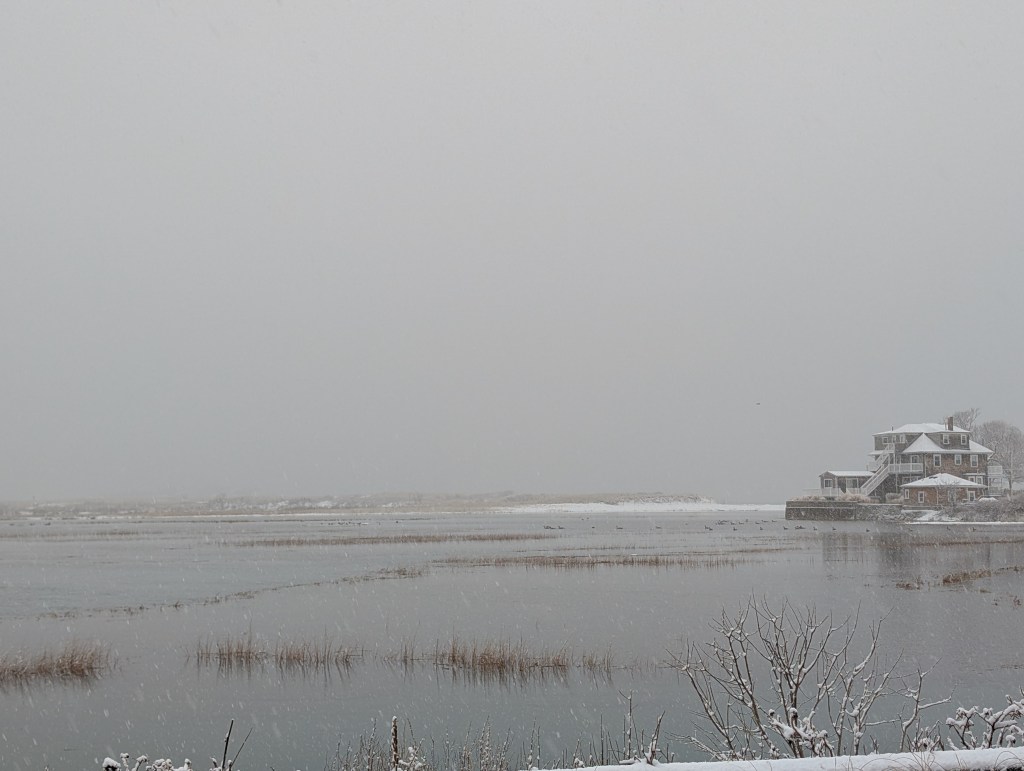 photos | video: This much snow about 8:30 AM in Gloucester, Ma. 1/11/2025. Roads clear. Winter views back shore, Good Harbor Beach, Days Pond, Long Beach.