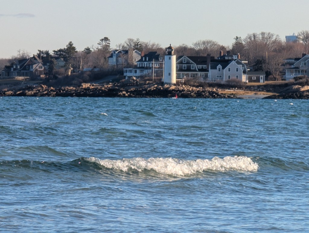 Images: Exciting sightings! Shoreside views looking in the direction of Milk Island and Twin Lights from Long Beach neighborhood. Feeding and fast maneuvers between Twin Lights and Good Harbor Beach with the extended feeding seen in the images closest in line to Milk.