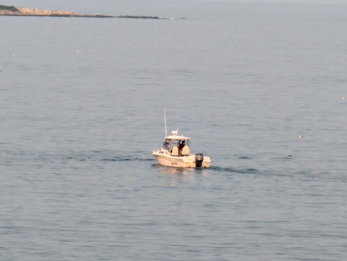 Images: Exciting sightings! Shoreside views looking in the direction of Milk Island and Twin Lights from Long Beach neighborhood. Feeding and fast maneuvers between Twin Lights and Good Harbor Beach with the extended feeding seen in the images closest in line to Milk.