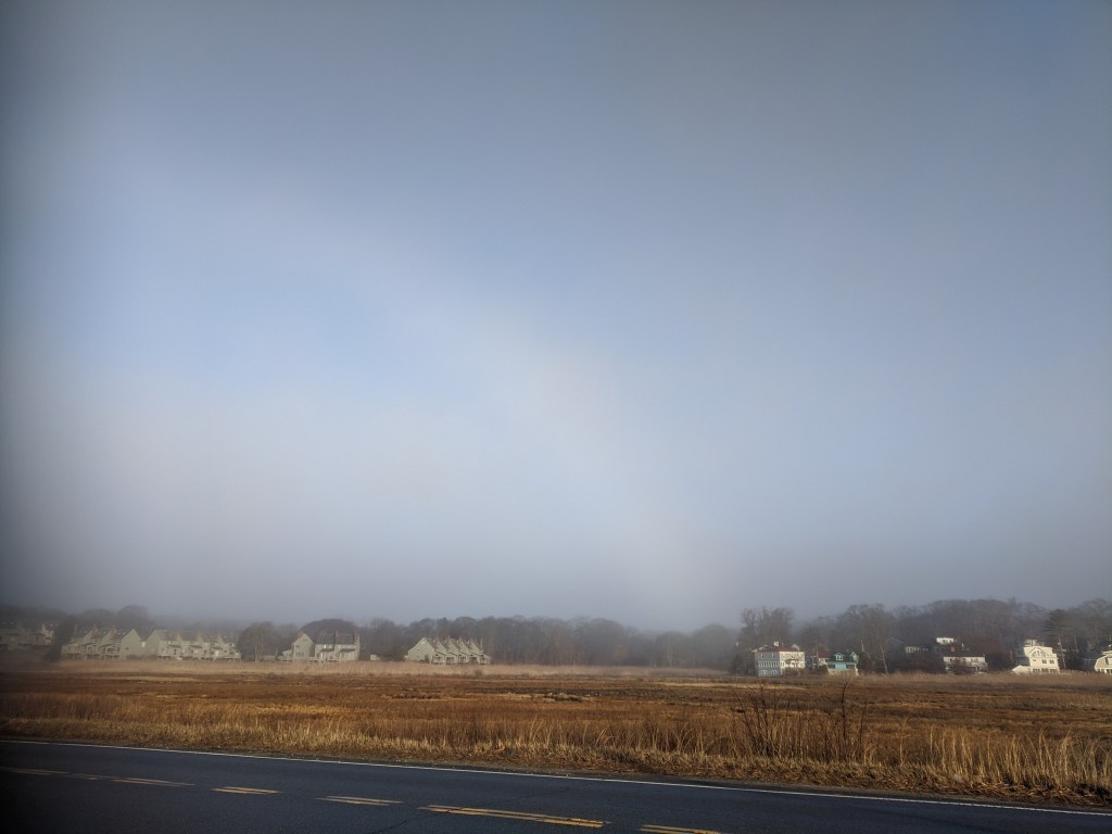 Feb. 10, 2023- a dreamy magic realism morning with several white rainbows at sunrise, maybe still. This one spanned the marsh, Old Nugent, Thacher Road more than an hour after sunrise. Hope to see your photos!