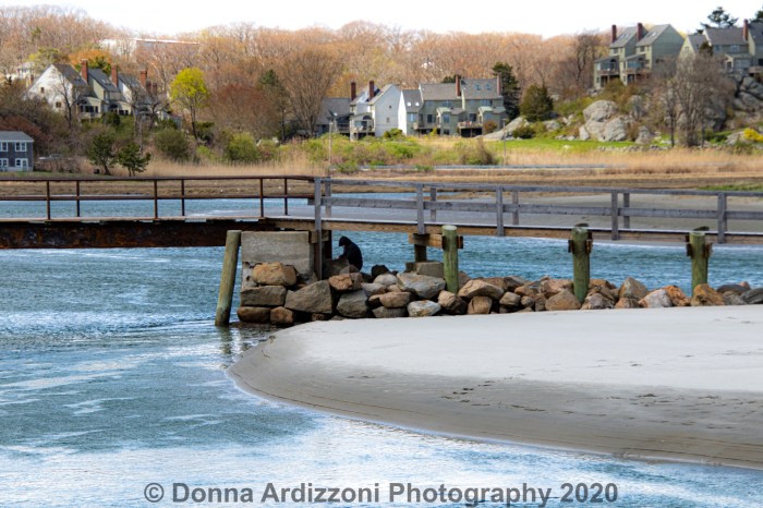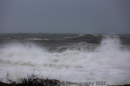 Jingle Bell Storm rise sunrise photos Dec. 23, 2022, about 3 hours before the next high tide: Power is on at Long Beach; Creek level at Good Harbor Beach footbridge; Salty Salt Island; Twin Lights, Thacher Island – sunrise spray and waves; Back Shore
