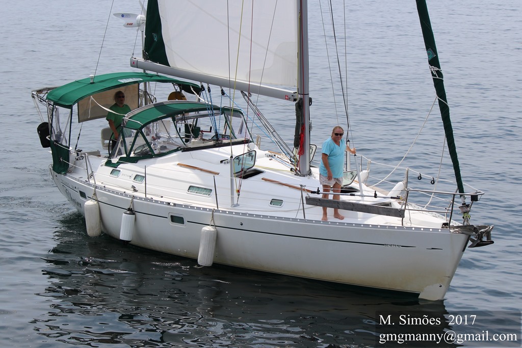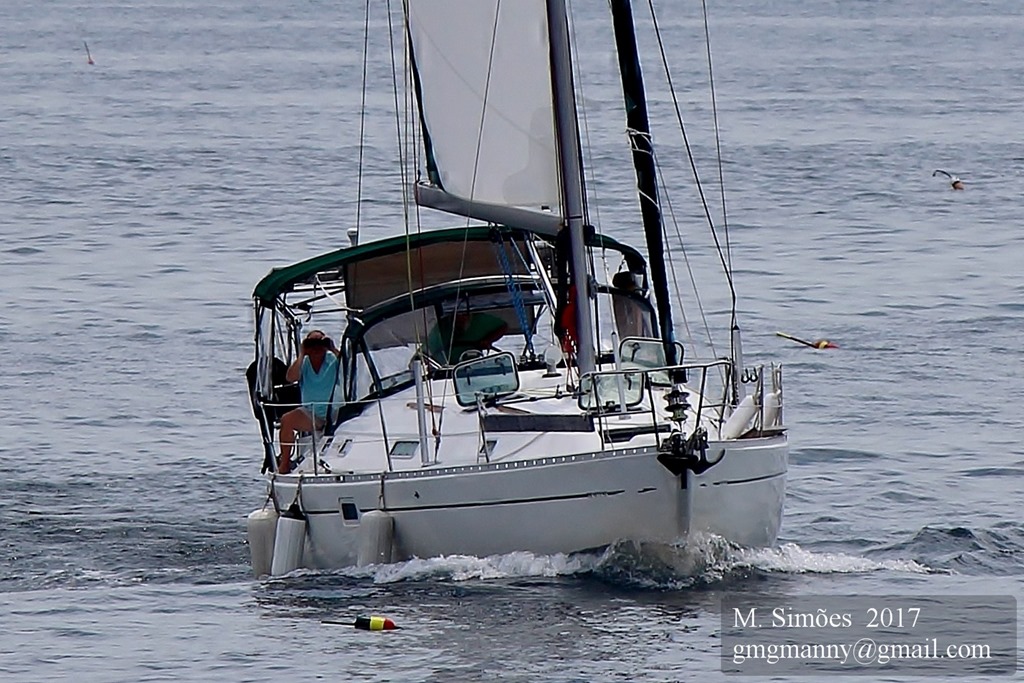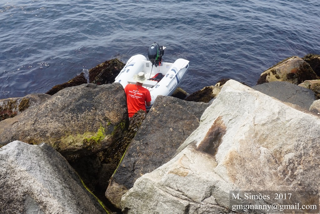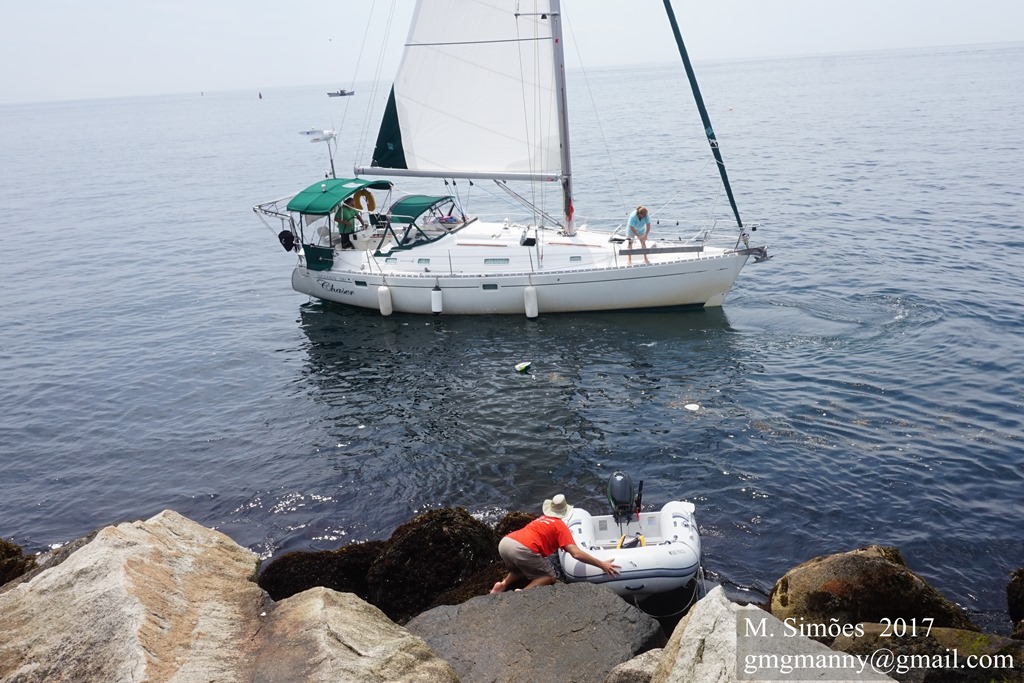 I spotted a small inflatable boat while taking photographs on the breakwater. At first I thought that someone may be diving, but could not see any diving flags. After an hour the dinghy continued to get closer to the breakwater. Finally it started to crash into the rocks. A gentleman form Rexford New York, who was fishing, climbed down the slippery rocks to capture the boat before it was damaged. Another fisherman cast a hook into the boat hooking a life jacket to guide it so he could pull the boat up onto a flat rock so the engine did not bang into the rocks, and held on to it. We called the Police. But shortly after we called the Police we spotted a sail boat heading in our direction. The sail boat from Rhode Island said It was their rubber boat, we released the rubber boat to them, called the police back, and off they went in their Oceanis 381 Chaser Sailboat, with wave and a quick “thank you”.