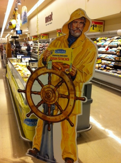 Gorton’s “Smarty Cruchman” promoting a New line of never fried fish sticks that have 50% less fat then their orginal fish sticks… This tour started at their headquarters here inย Gloucester Ma. this morning and moved to Gloucester Crossing Market Basket parking lotย for their 2nd tour stop.ย The truck tour will be traveling across the country all the to Seattle, Washington promoting this new fish stick product!
