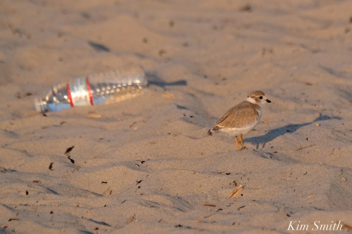 Twenty-eight-day old Piping Plover shown with a small sample of the plastic pollution found daily on Good harbor Beach. The plastic debris litters GHB every morning before Gloucester’s hard working DPW and trash-piker-uppers arrive to clean up the mess left by beach goers the day before.