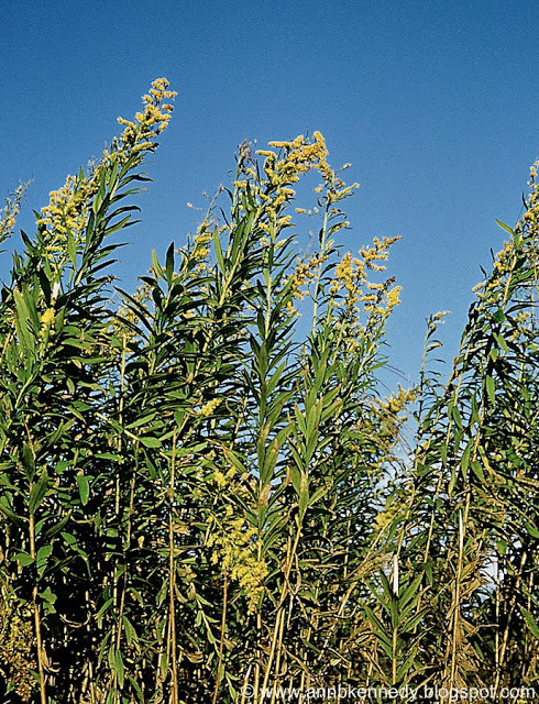Ed note: I am struck by how similar this species of Japanese goldenrod looks to our native Seaside Goldenrod (Solidago sempervirens), with thick waxy leaves, large flowers, and in its height.