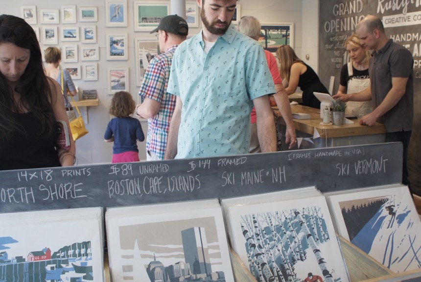 The grand opening for Rusty+Ingrid Creative Company’s new digs in Rockport continues through Sunday. Don’t miss the chance to stop by and see their work in their new studio and gallery. Their prints are vibrant, original, and completely handmade (including the frames). Also, they’re offering popcorn in different flavors. Who knew chocolate-drizzled popcorn was delicious? Not me.