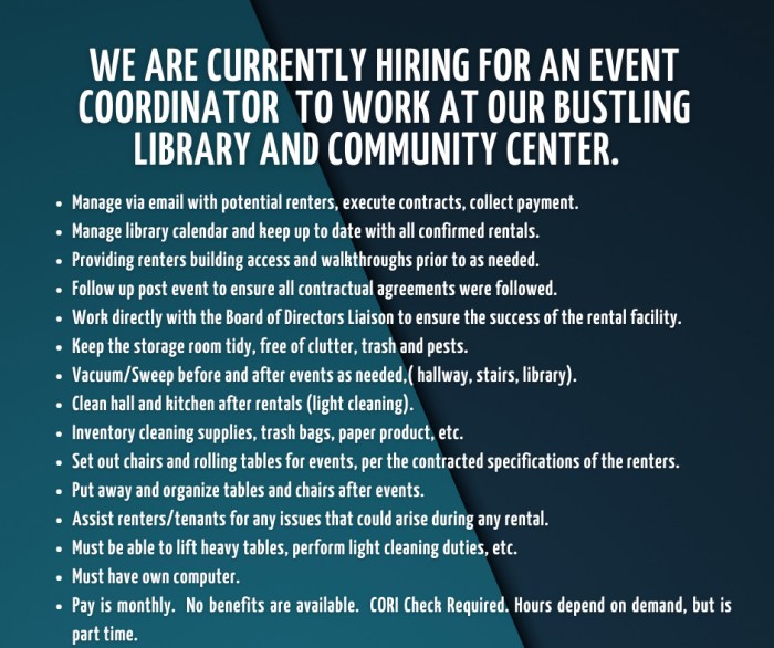 Interested individuals should send a resume and cover letter by Mon. February 8, 2020