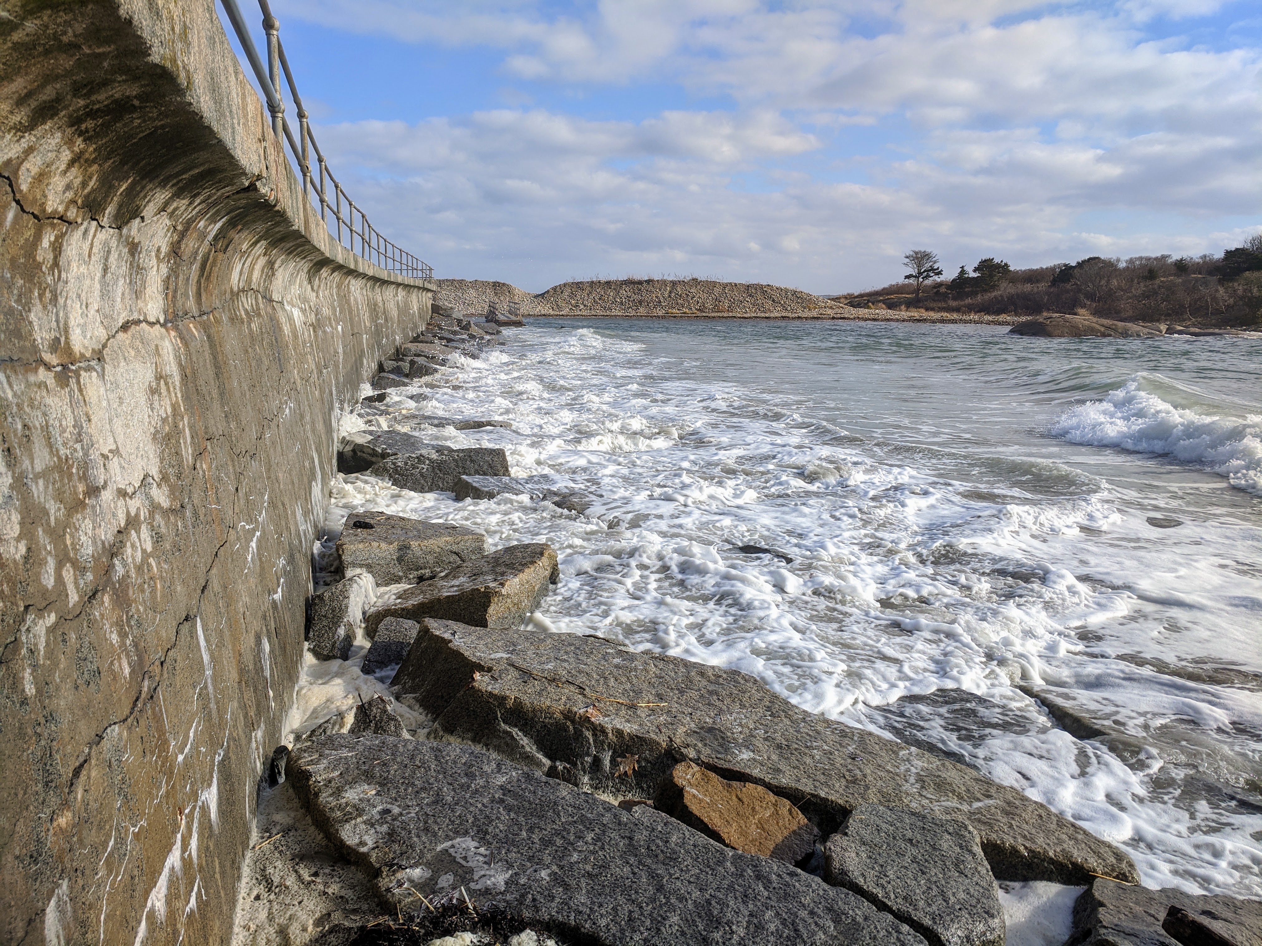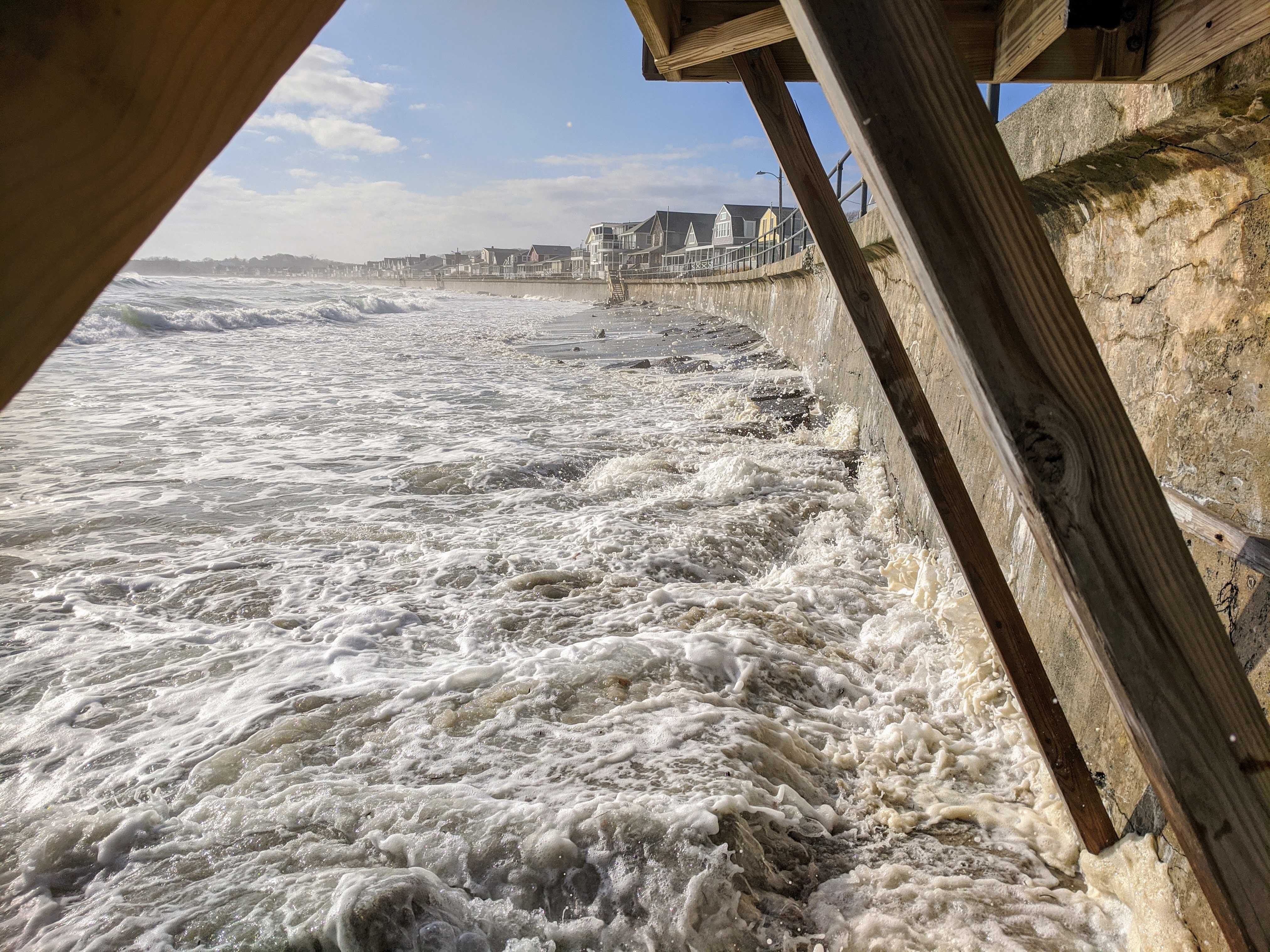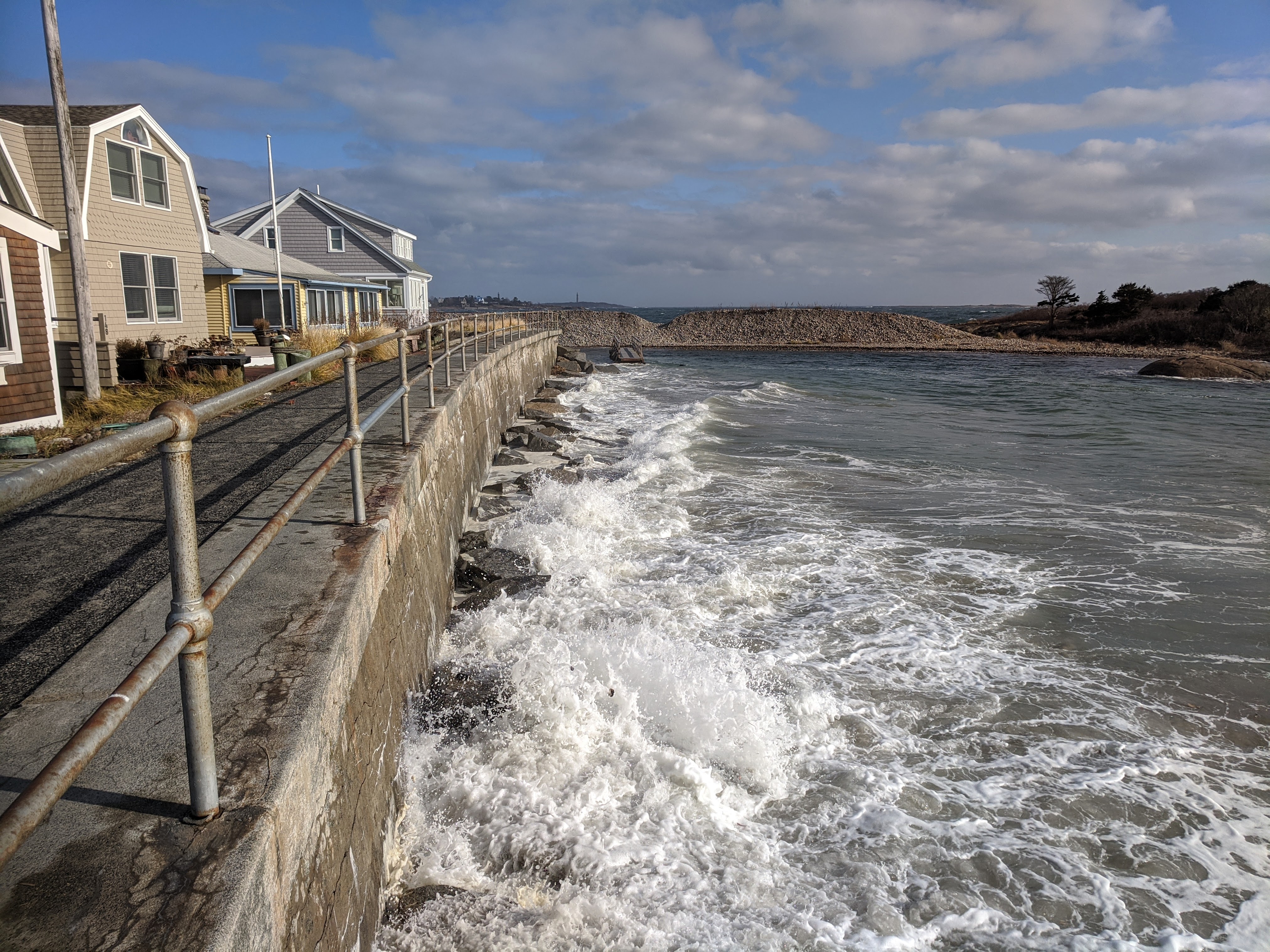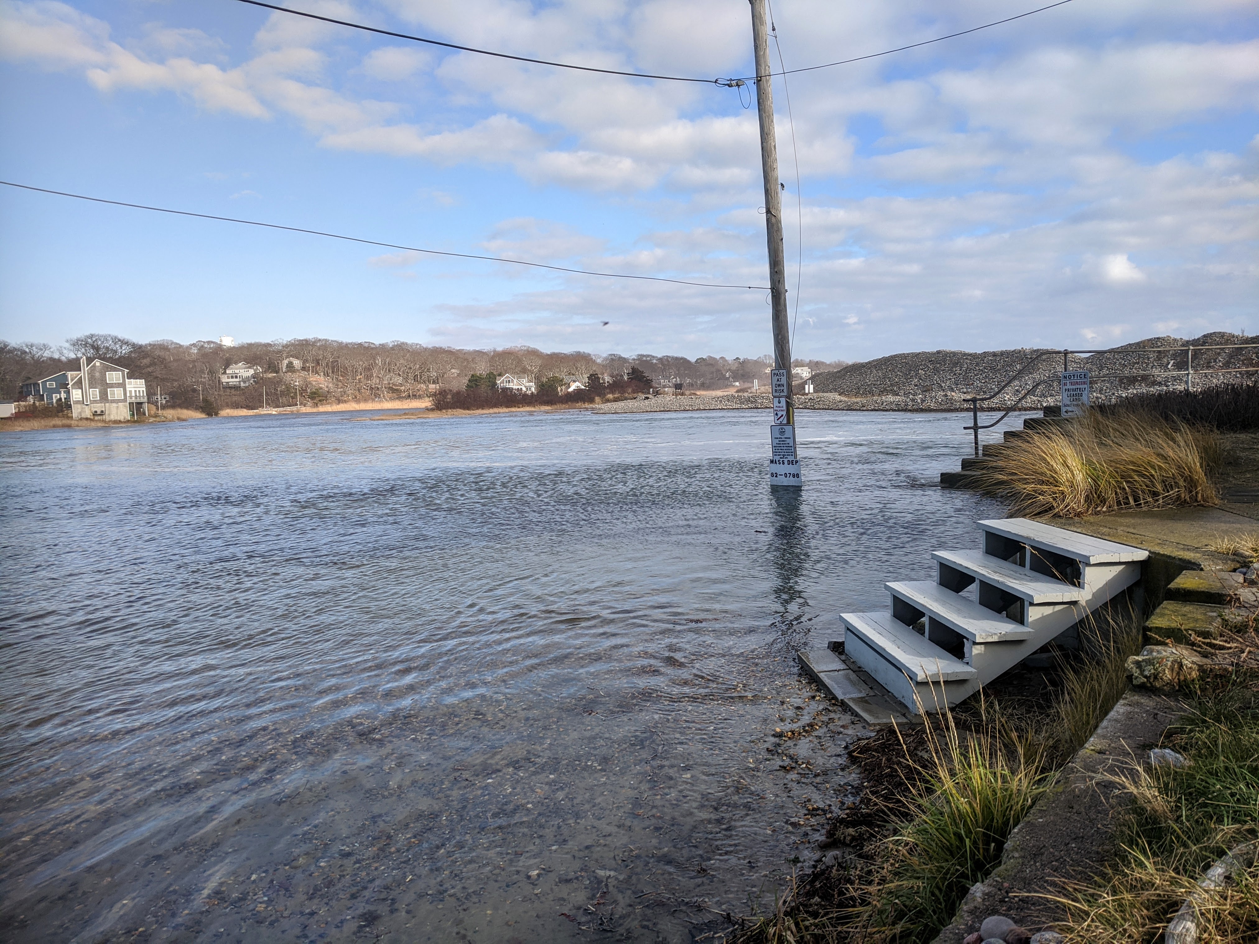 The tides have been high for the last couple of days. Wednesday on Stacy Boulevard 3.5 hours after high tide the splash over was still happening.