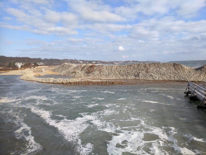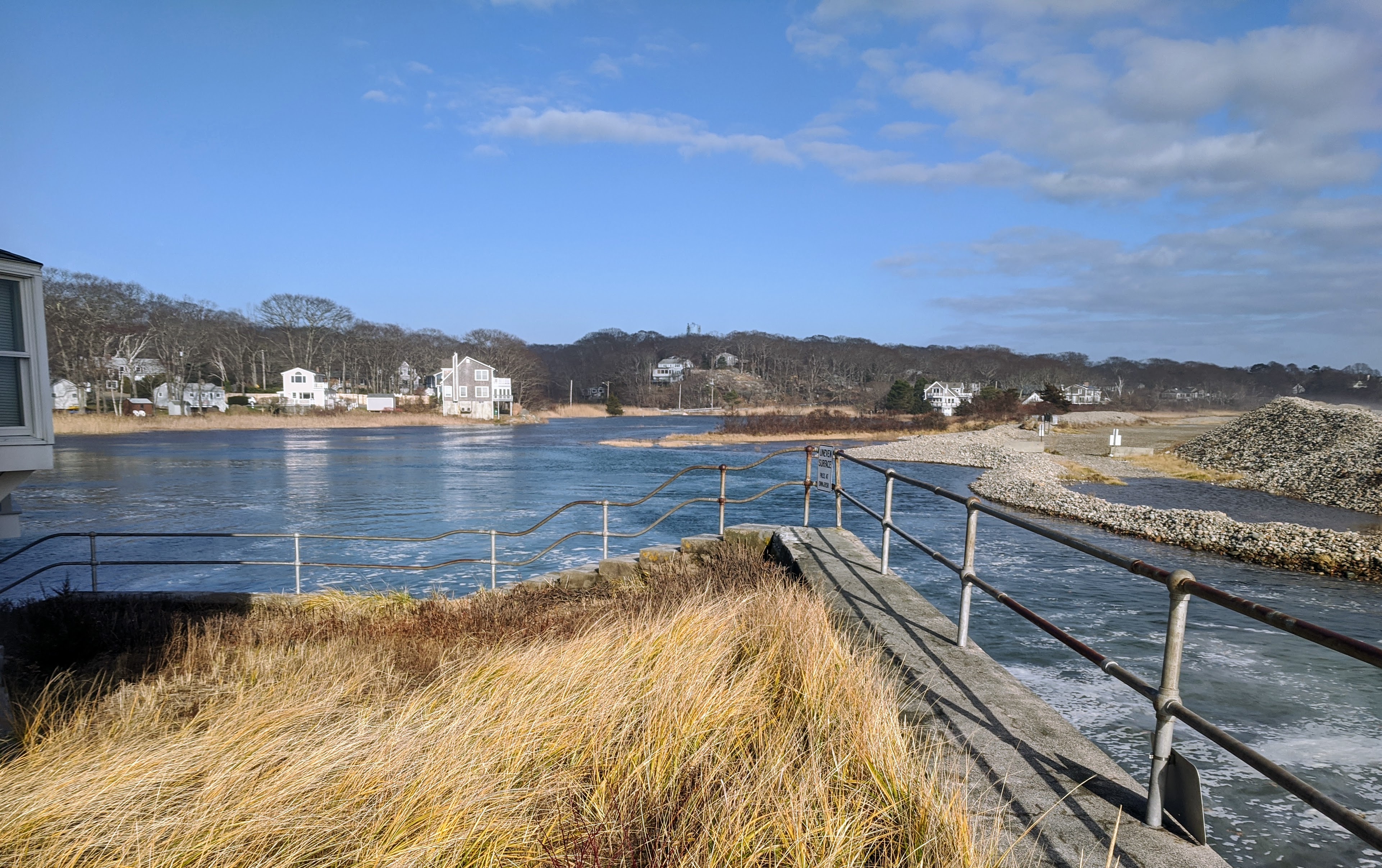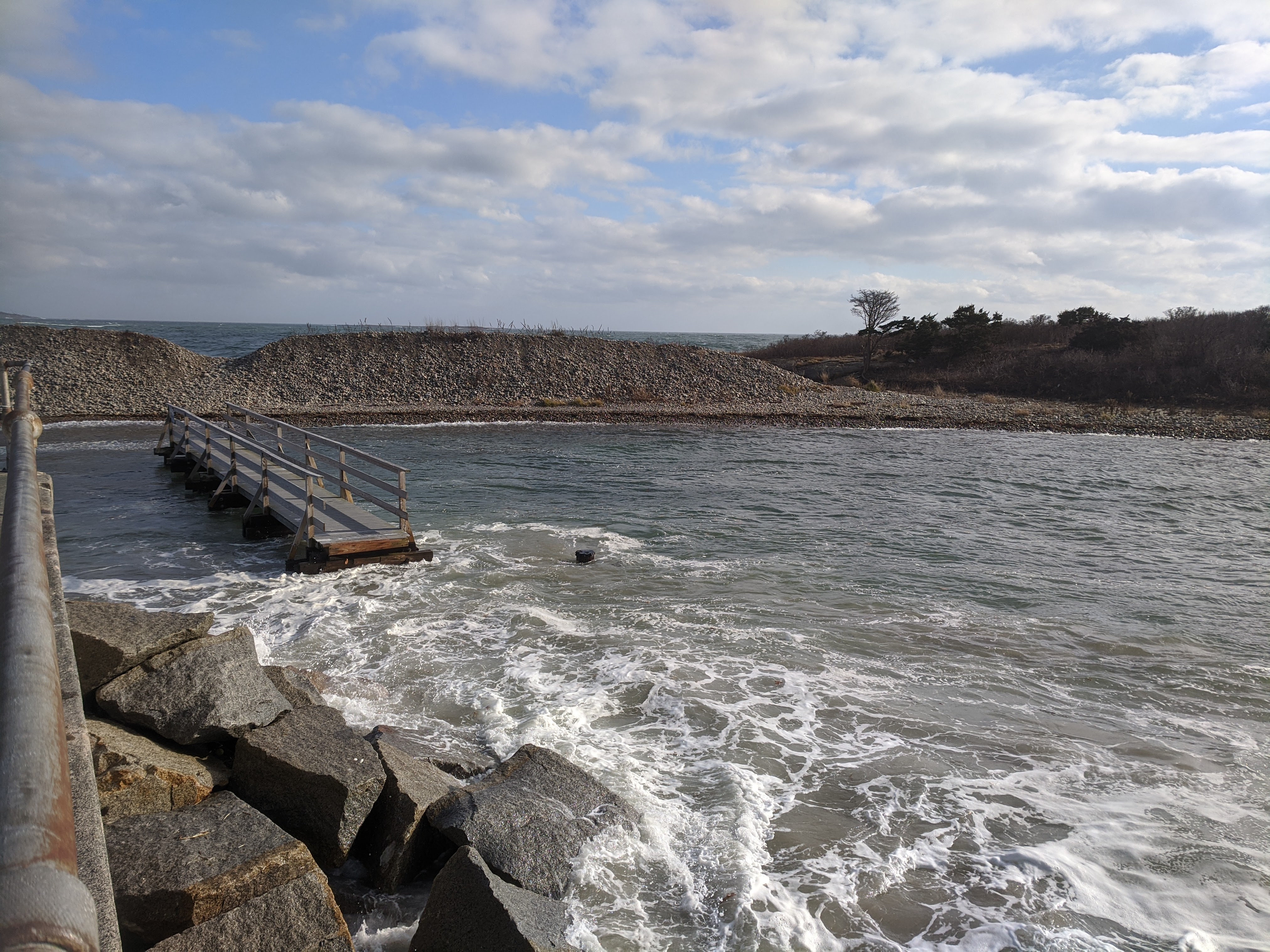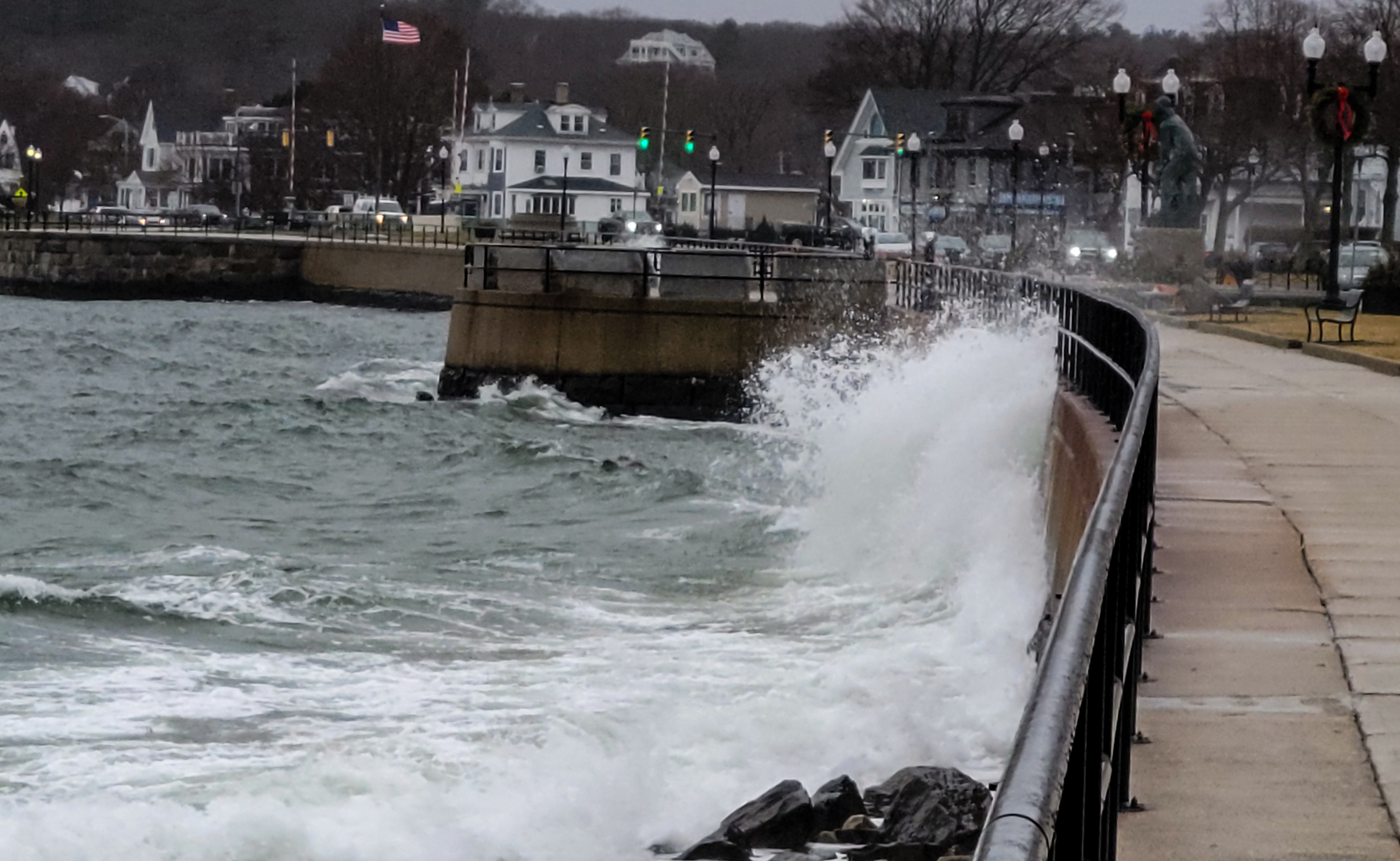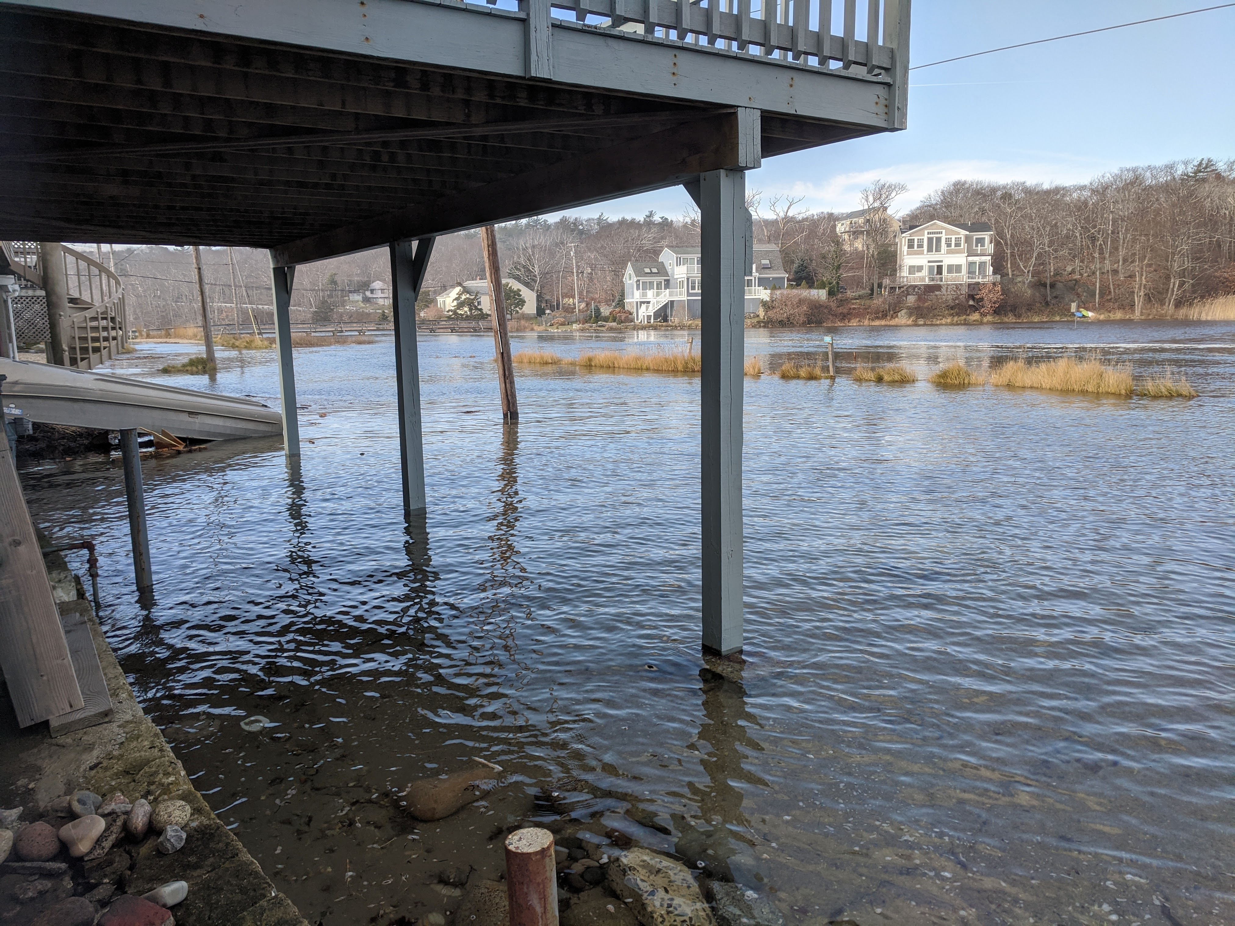 The tides have been high for the last couple of days. Wednesday on Stacy Boulevard 3.5 hours after high tide the splash over was still happening.