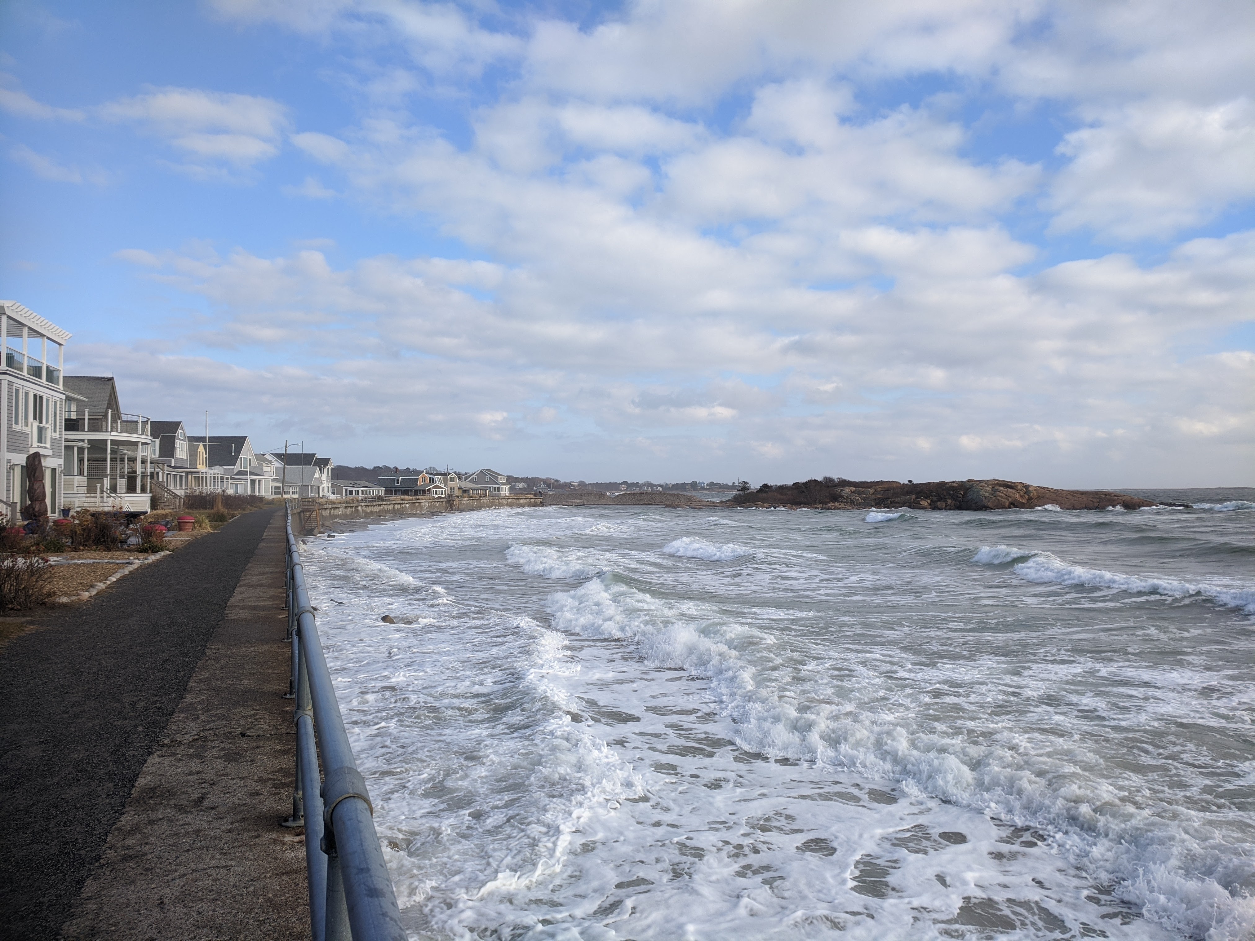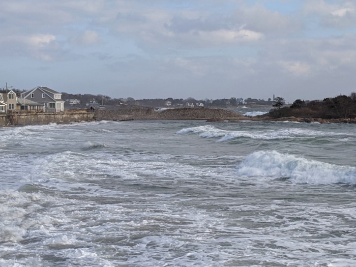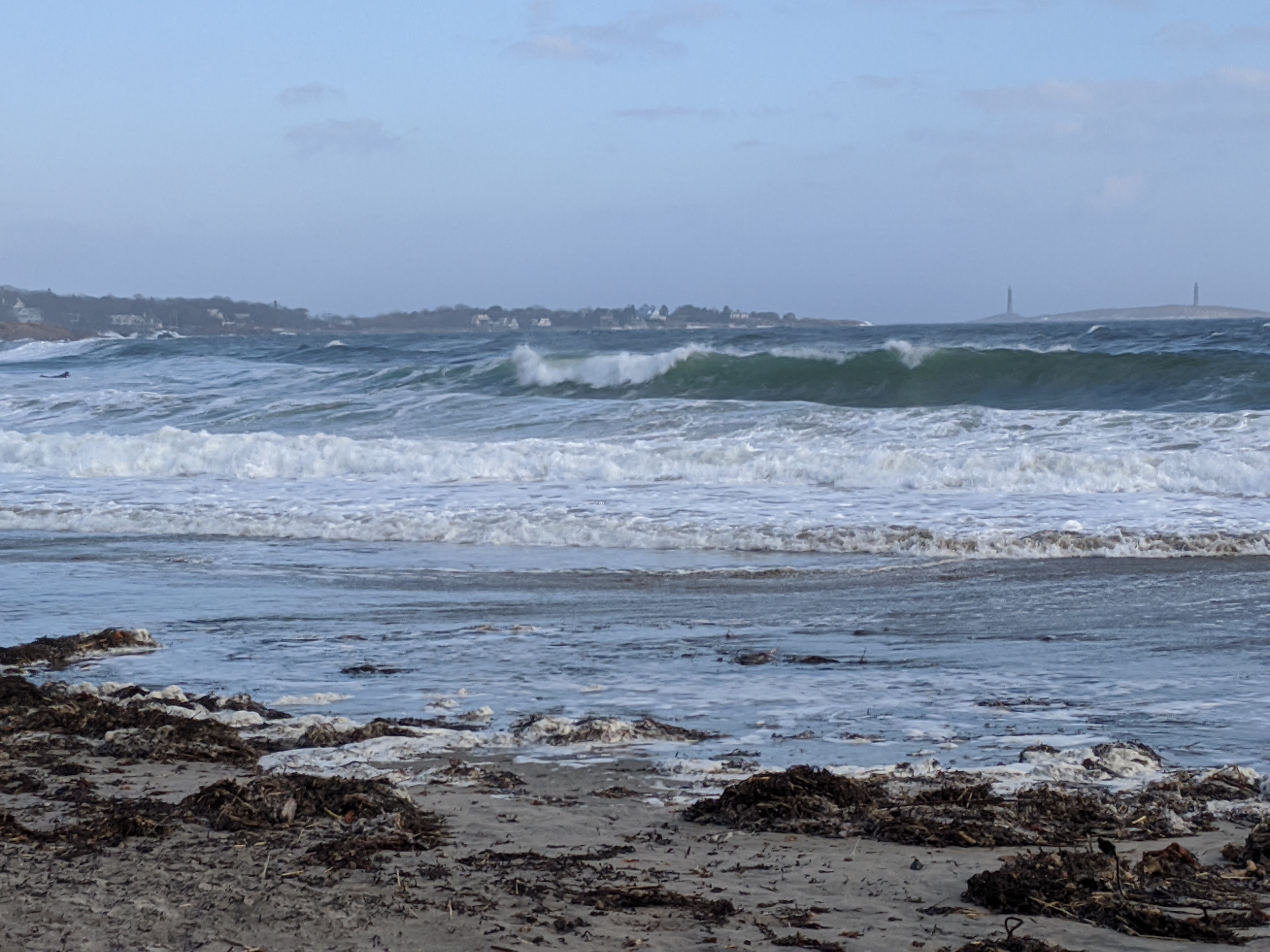 Three hours after high tide on Shore Road, Monday. I think I am obsessed with stormy oceans.