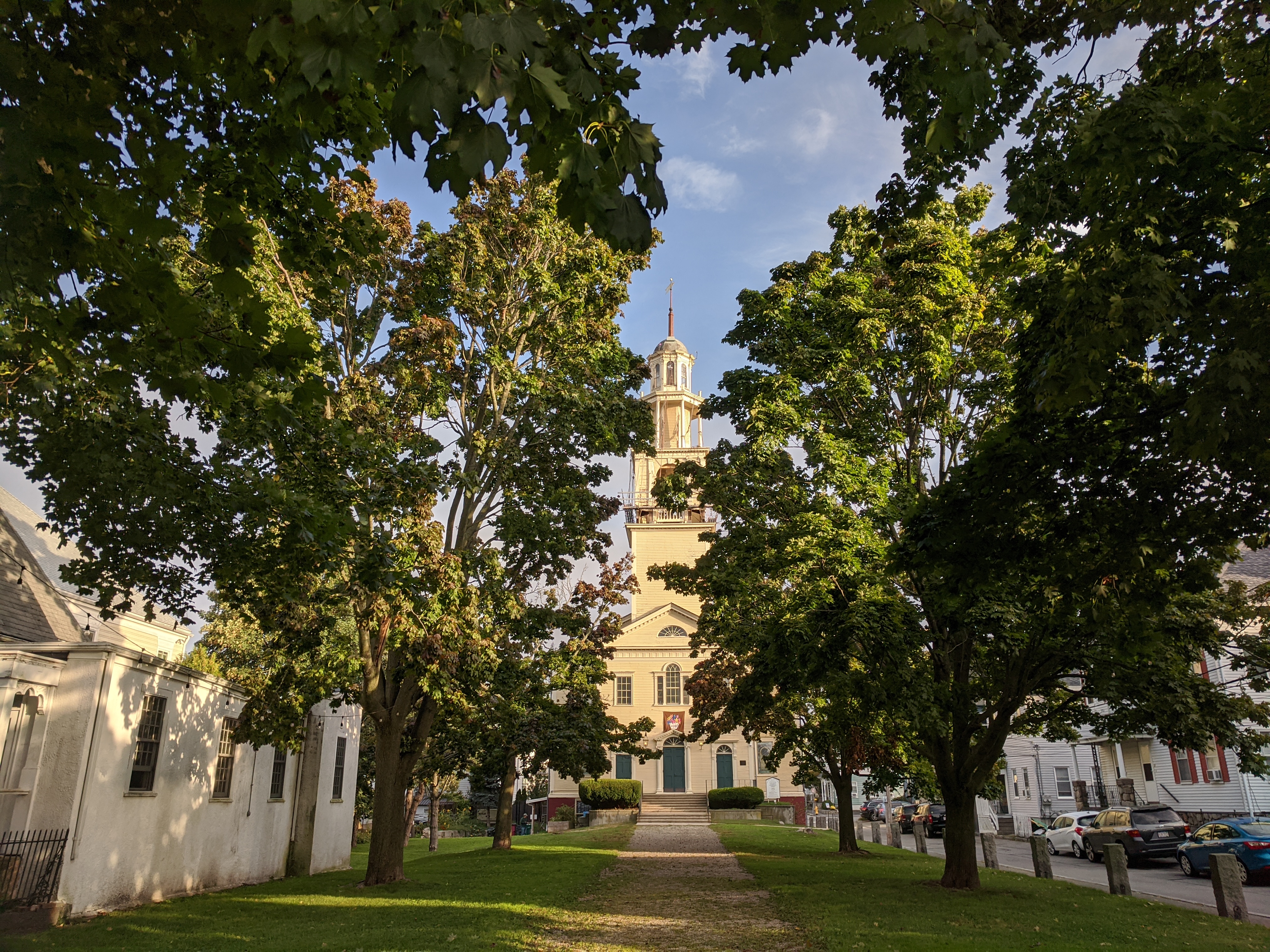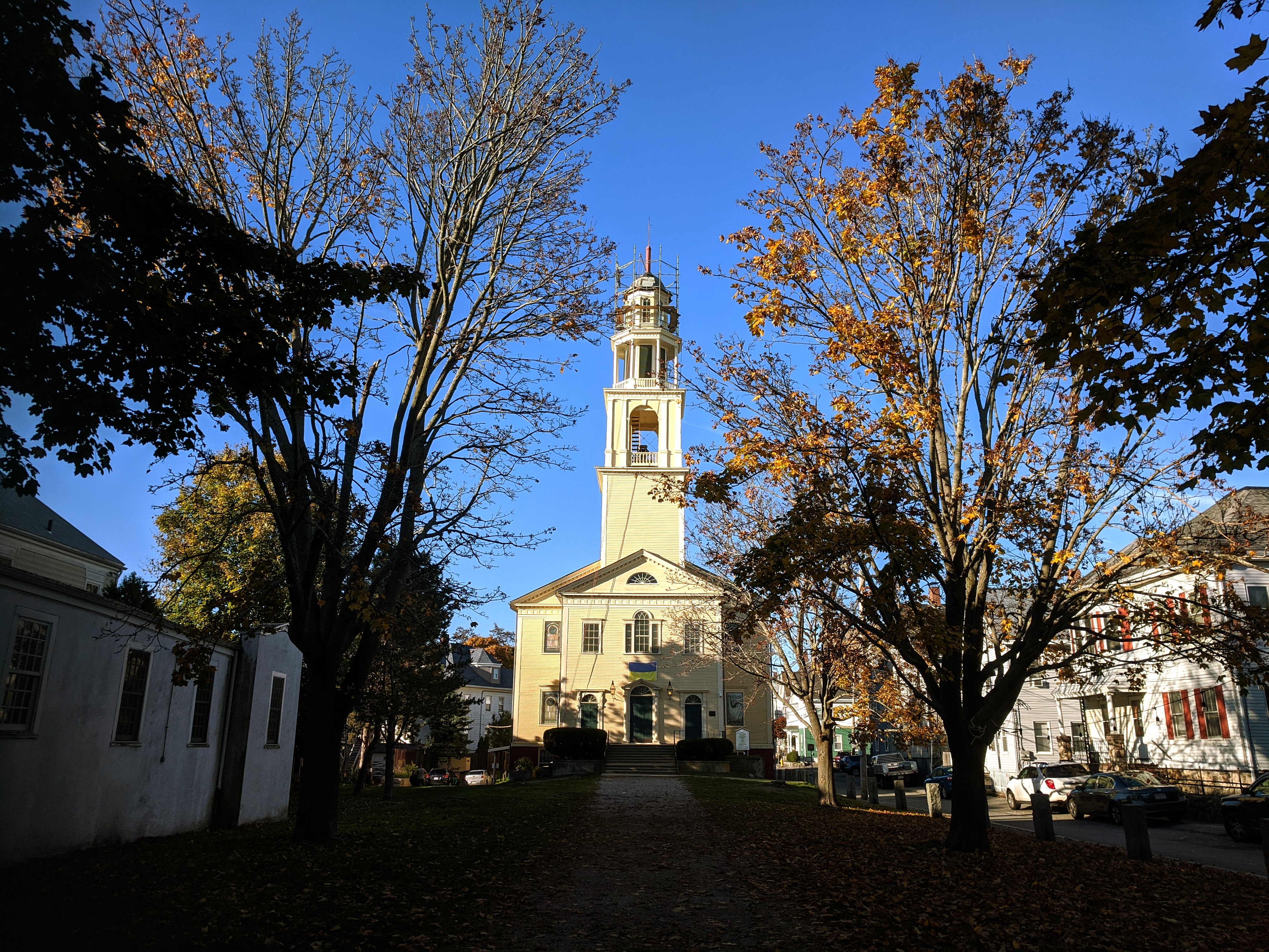 photo caption: Gloucester UU Church August (summer), November (fall), (winter)