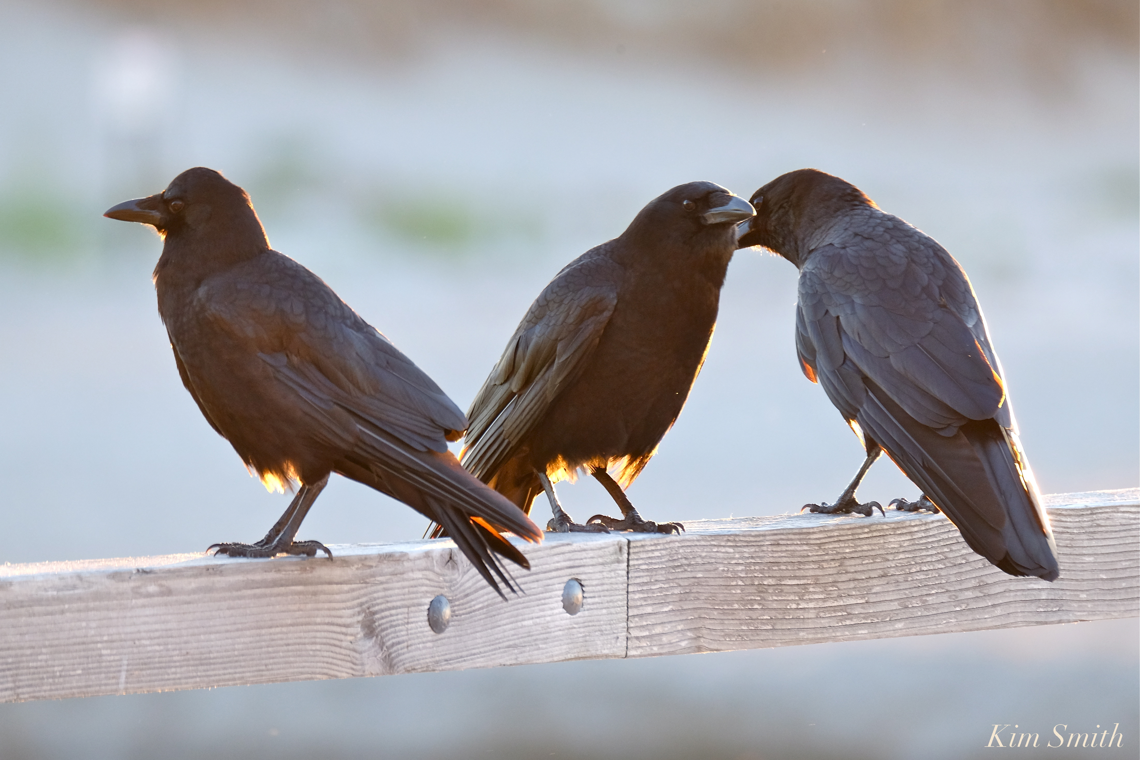 Morning meet and greet of the Crow Breakfast Club, held every day on Nautilus Road following a warm sunny beach day.