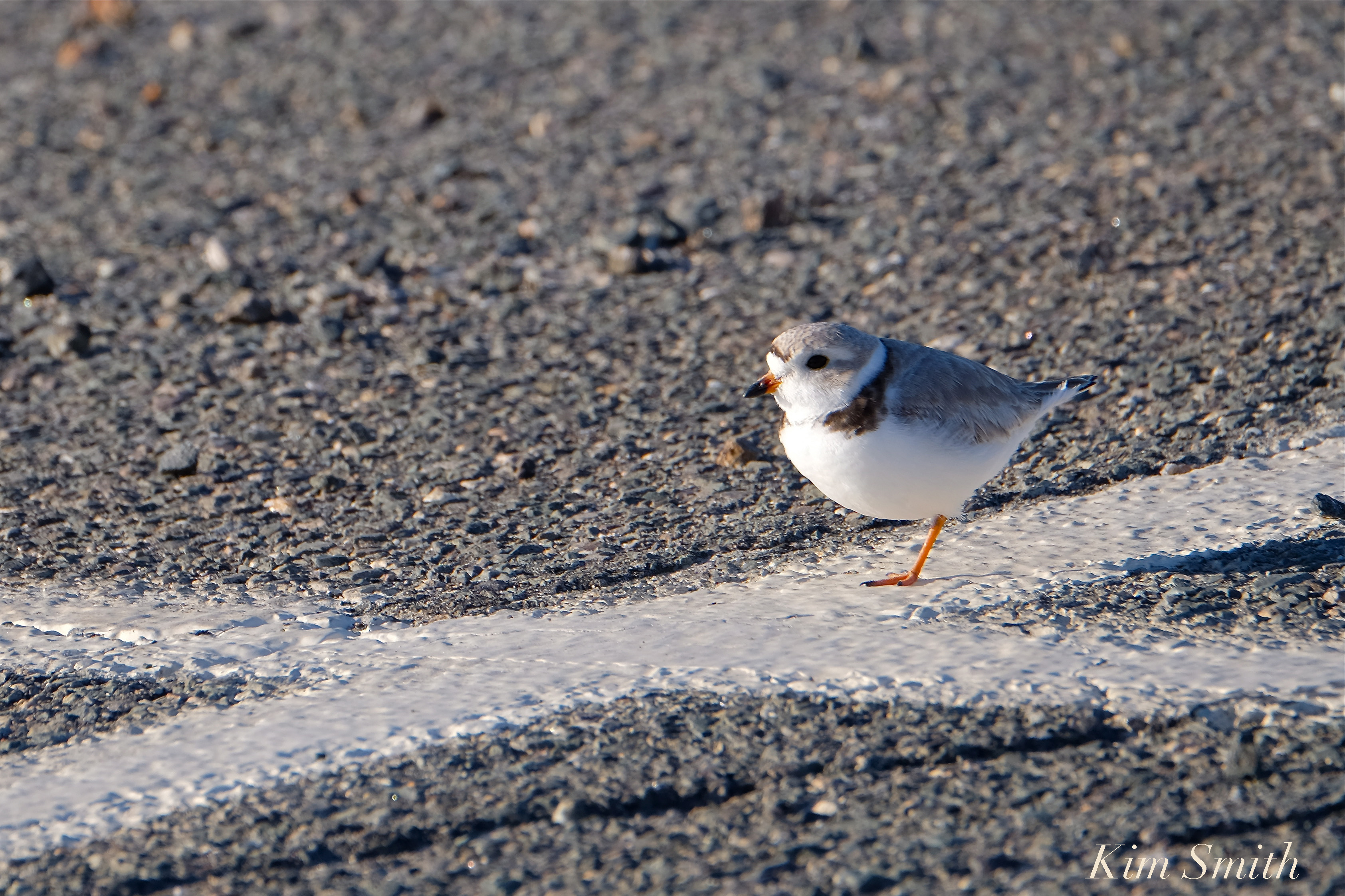 Mid-April and after days of dogs running through the nesting area, the Piping Plovers are discovered standing on the white lines in the GHB parking lot.