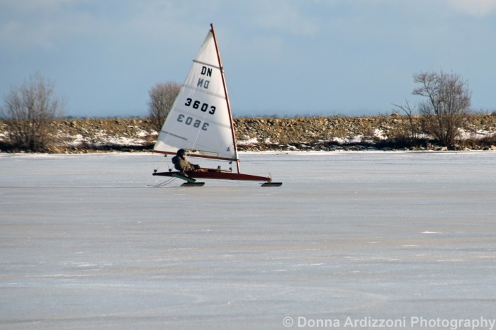 Michelle Barton pointed out that there aren’t too many places in the area where the ice and wind are just right for ice sailing, and Niles Pond happens to be one of those unique places. Andy shares they were sailing at 40mph today!