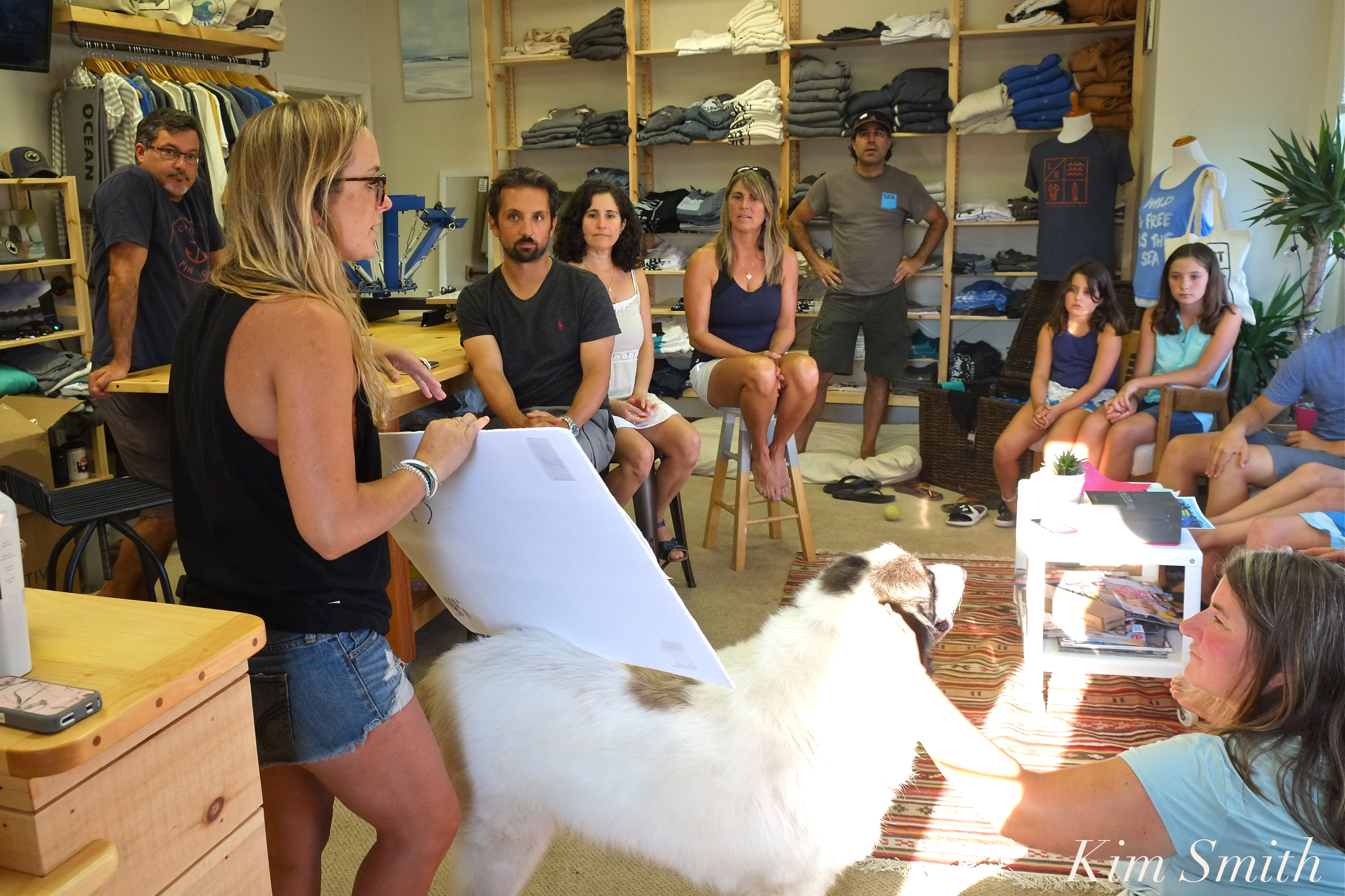 The event took place at the beautiful printing headquarters and shop of Jamie Mathison and sister Sarah Steward, One Ocean One Love. Jamie is the owner and artist, and sister Sarah is the general manager. From the shop’s website: “One Ocean One Love shop is a hand-printed, surf-inspired clothing brand, offering one of a kind ocean related products in stores and online. We’re a small eco-friendly business made up of forward-thinkers, with a passion to conserve and protect marine life. 5% of all One Ocean apparel net profits are donated toward keeping the oceans clean.”