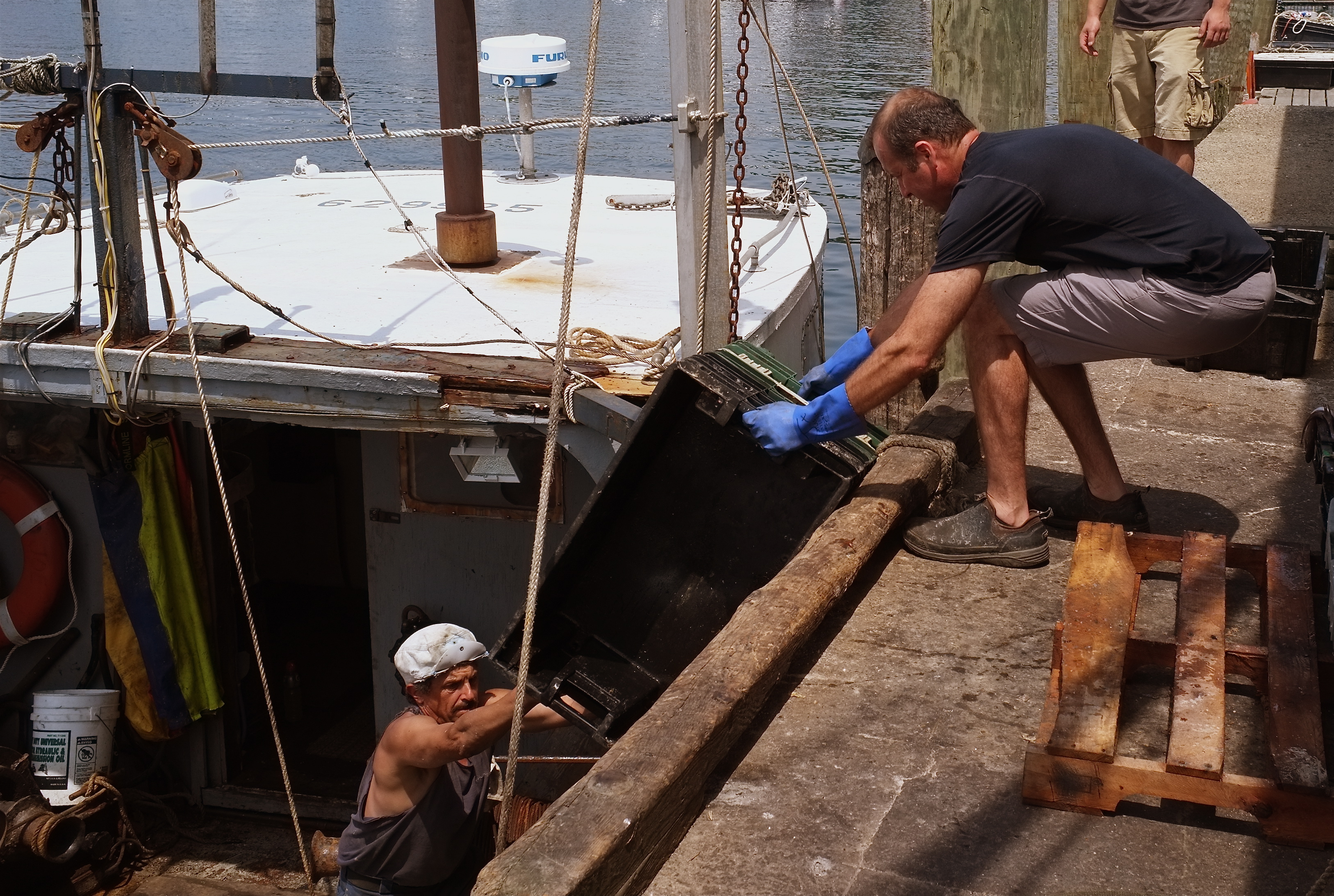 A foggy Sunday morning and the captain and crew of the FV Capt. Novello are hard at work preparing for a day of fishing.
