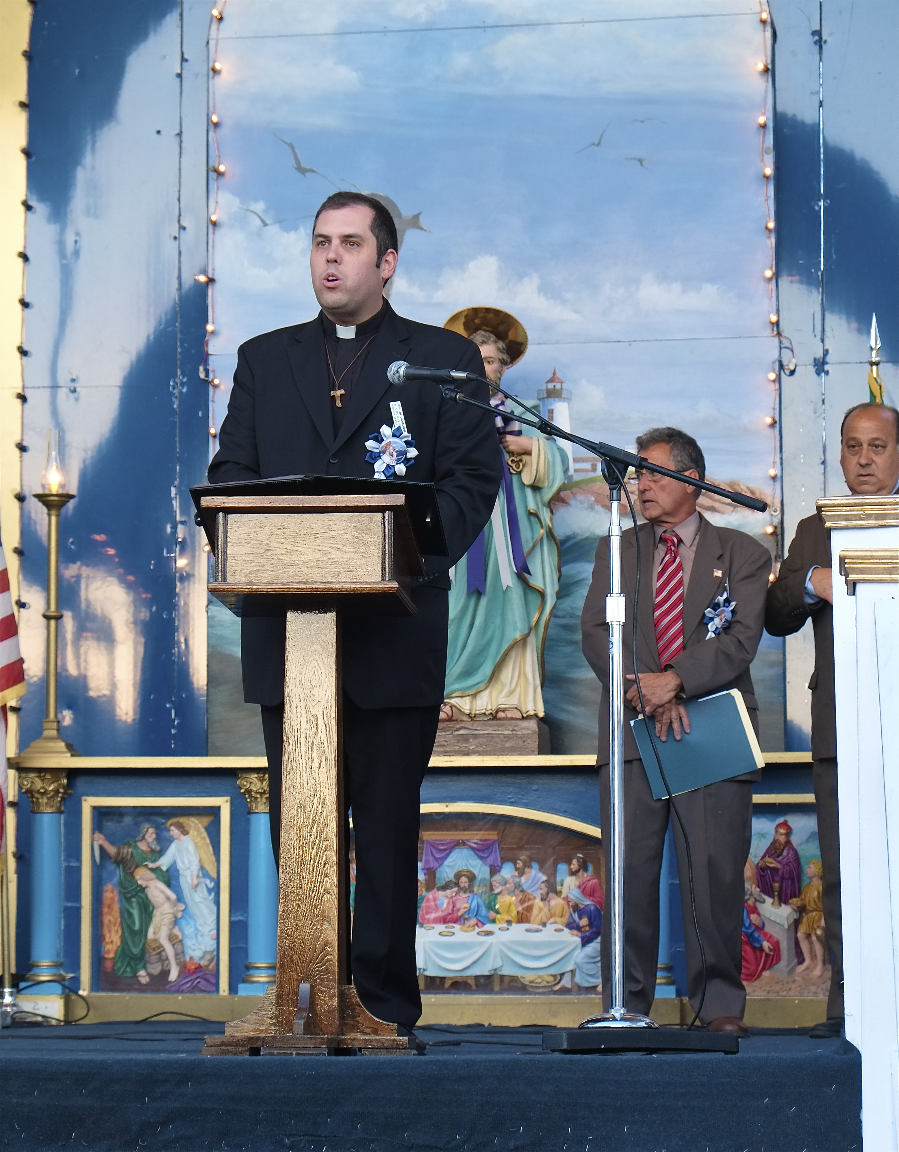 Rev. James M. Achadinha, the new pastor for Our Lady of Good Voyage and Holy Family, was introduced to the crowd.