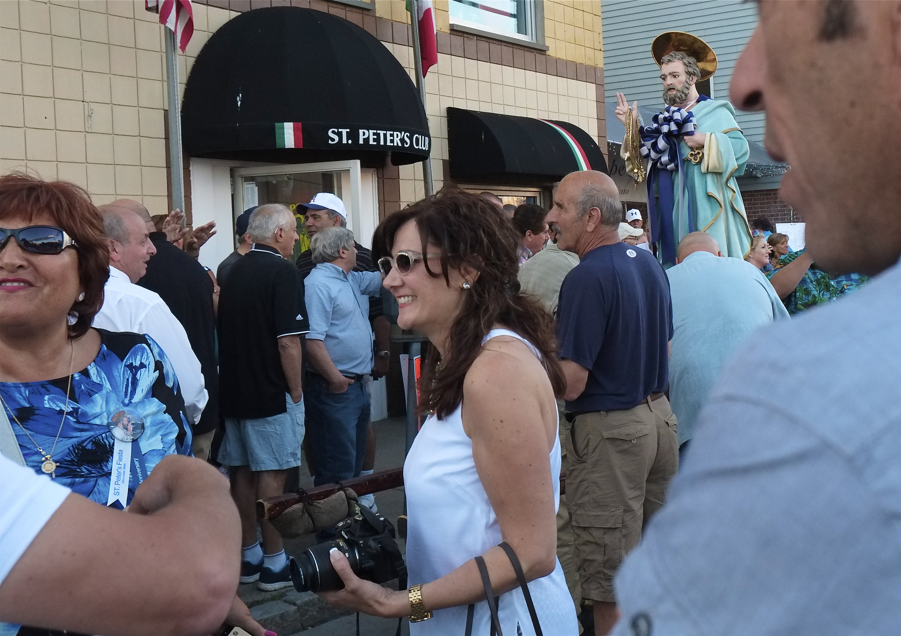 You’ll see all three Greasy Pole winners Joe DaSilva, Lenny Taormina, and Jake Wagner, Mayor Sefatia Romeo Theken, House Representative Ann Margaret Ferrante, State Senator Bruce Tarr, Sunday Greasy Pole Walker and City Councilor Steven LeBlanc, Peter Black Frontiero, Nicky Avelis, Joe Sanfilippo, Paul Nicastro, Kyle Barry, Mark Allen, Crazy Hat Ladies, sisters Robyn and Amy Clayton, and many, many more. Viva San Pietro!