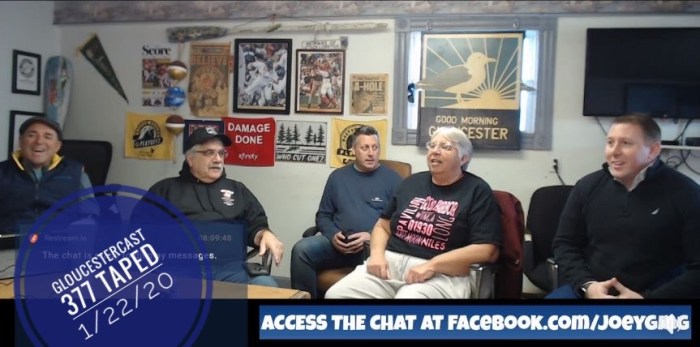GloucesterCast 377 w/ Chris McCarthy, Jim Capillo, Lisa Olson, Carl Ellis, Scottie Mac, Pat & Jimmy Dalpiaz, Kim Smith, Charlotte and Joey Ciaramitaro Taped 1/22/20