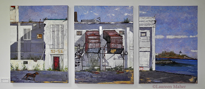 This month the Adolph Matz Gallery features the work of Laureen Adrienne Maher. “Birdseye View” is her largest body of work and features many images of the old Birdseye building as it stands today. You will see the dilapidation and gritty character that this site brings to our unique cityscape … if only for a little while more. Birdseye View is also the title of the large centerpiece of this exhibit: three 18 x 24 canvases dressed in oils and mounted on a stucco-like background.