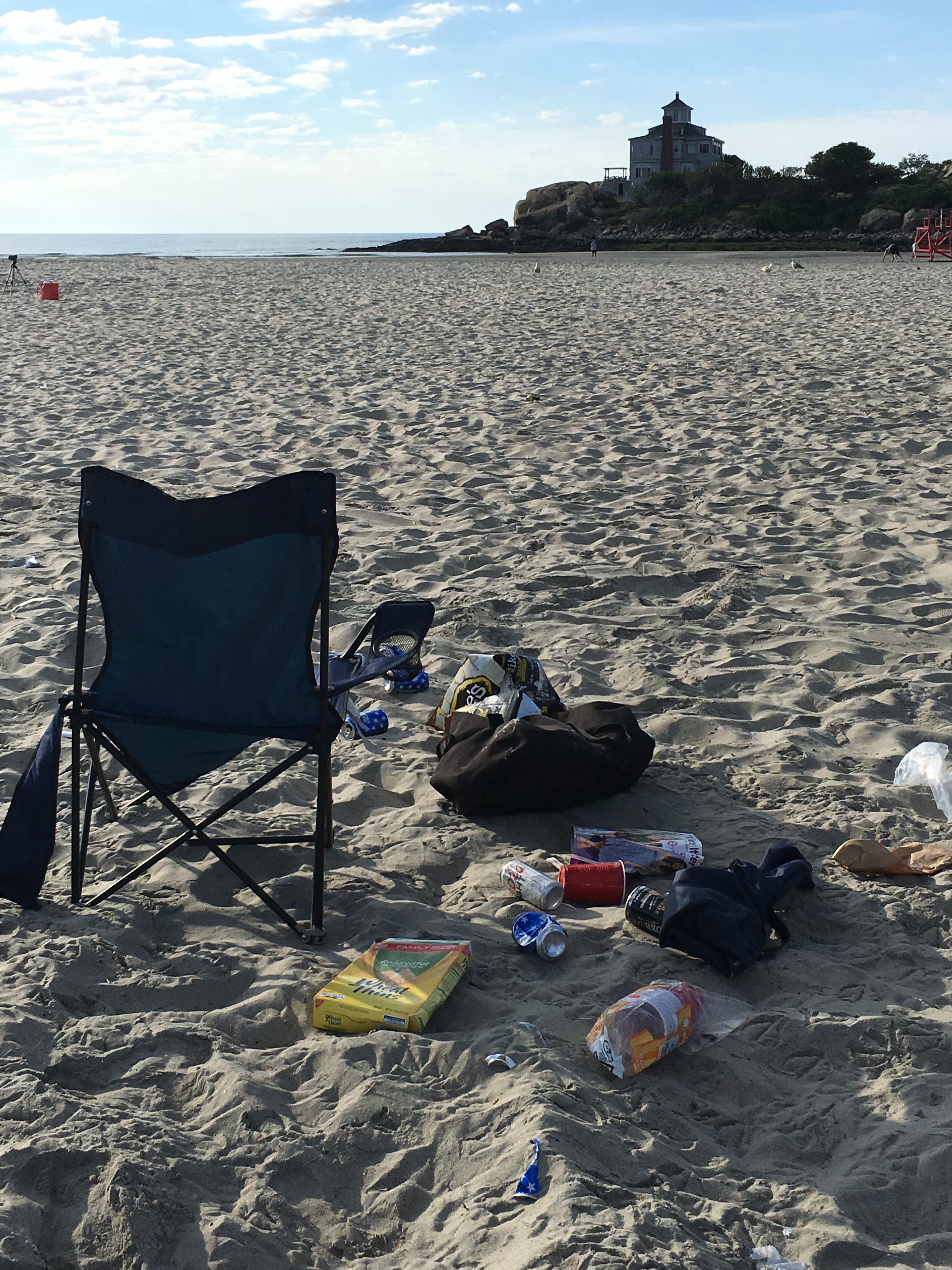 Of course, the litter is not just at beaches. Yes, it detracts from other priorities. DPW is finding trash pretty much everywhere people park (like the boat ramps.) Some people feel that it’s ok to leave behind bags of trash outside where they parked, or next to a full barrel. Gentle reminder from DPW: Pizza to go boxes atop the barrels can block bins that may hold more. Pizza boxes need to be compacted.