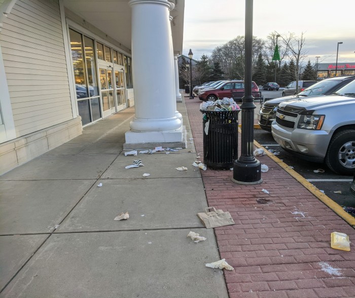 The barrels were full both days. It was less messy than some of the previous busy weekends. There was lots of dog waste. By morning, they found that there was still trash left in the parking lot which means…