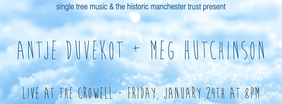 Two of contemporary folk’s brightest stars, Antje Duvekot and Meg Hutchinson, share the stage at Manchester by the Sea’s historic Crowell Chapel for one unforgettable night of song and poetry.