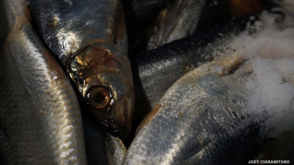 Over time the salt draws all the fluid from the fish and they shrivel up a bit. Here, our friend Mr Mackerel could use a drink of water to rehydrate. Not to worry, soon enough he will be stuffed in a bait bag and sent off the back of a lobster boat to lure in some unsuspecting lobster that’s poking around at the bottom of the ocean looking for a meal. Mr Mackerel will sure enough find that water once again…..just before he becomes lunch.