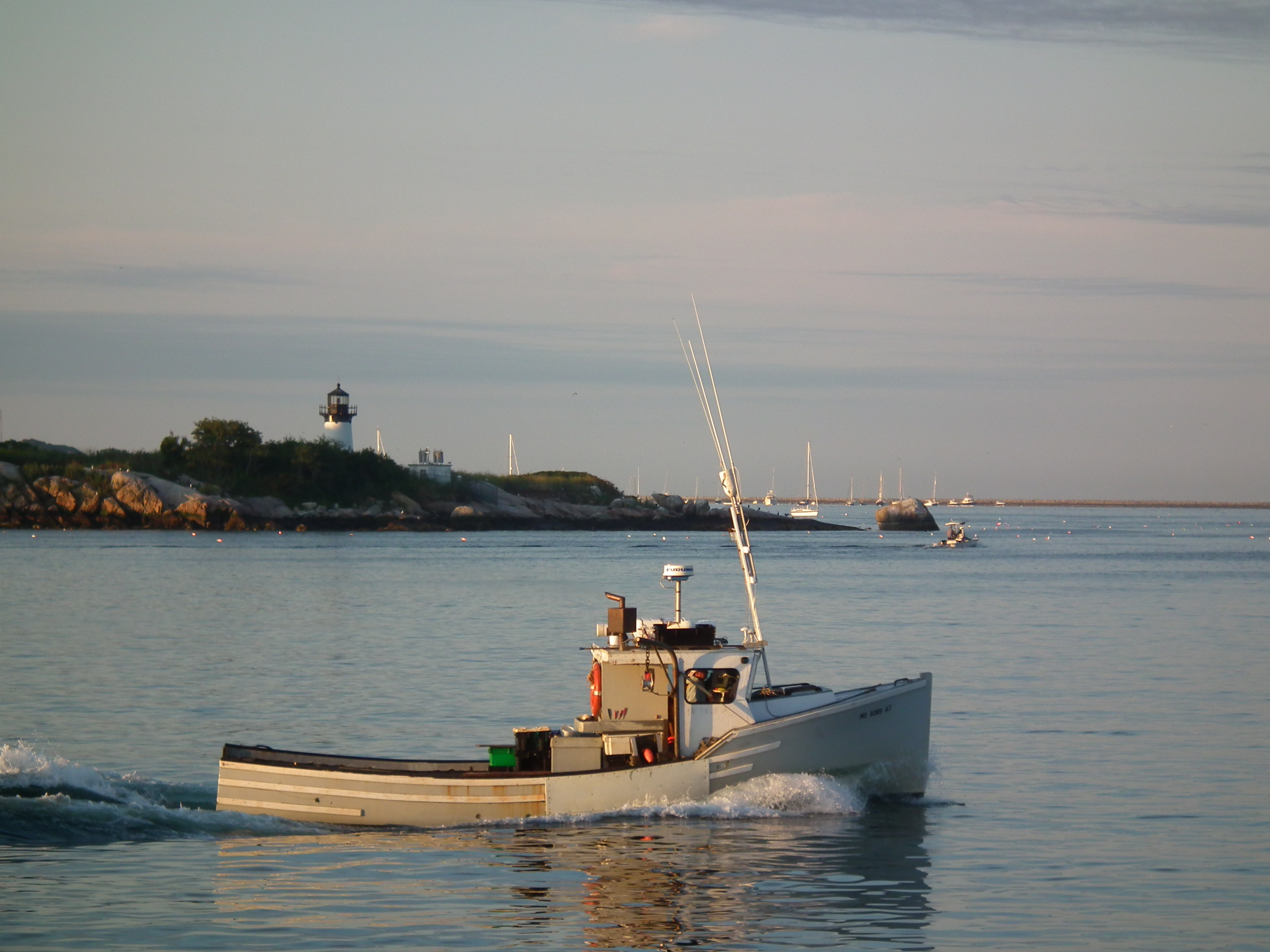 You couldn’t have dreamed up the clouds or the sun breaking through at just the right angle to lead straight down the harbor to our dock. You couldn’t have dreamed up the lobster boats waiting to offload at just the right perpendicular locations to frame the shot on either side of the lobster boat’s mast that was tied up at the dock. Picture perfect.