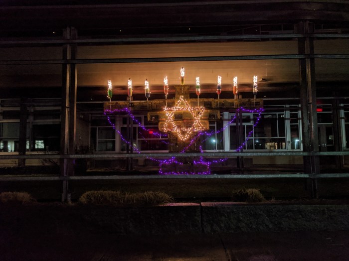 I’m reposting a photo from last week that showed how the Lobster Trap Menorah looked in the morning snow, and at night; also public menorahs on Main Street Gloucester and Rockport. Swing by to see a new candle lit daily after sundown.