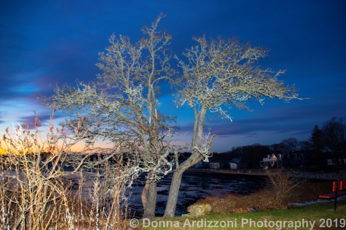 Wrapped trees are big this year, too. A Thurston Point twinkling annual reminds me of New York’s landmark Tavern on the Green, circa 1970s Warner Leroy Crystal Room reno. Little “Tavern on the Riverine” in Gloucester is inspiring a few more wrapped Thurston trunks in 2021. Who knows? Perhaps a Thurston trunk trail may become a neighborhood seasonal thing.