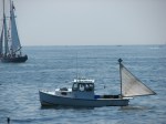 With the alarm set for 4:30 a.m. yesterday Finn had his bag packed for a day on the lobster boat.  He was grumpy for about a minute upon waking up but then rallied in typical Finn fashion for a day of work.
